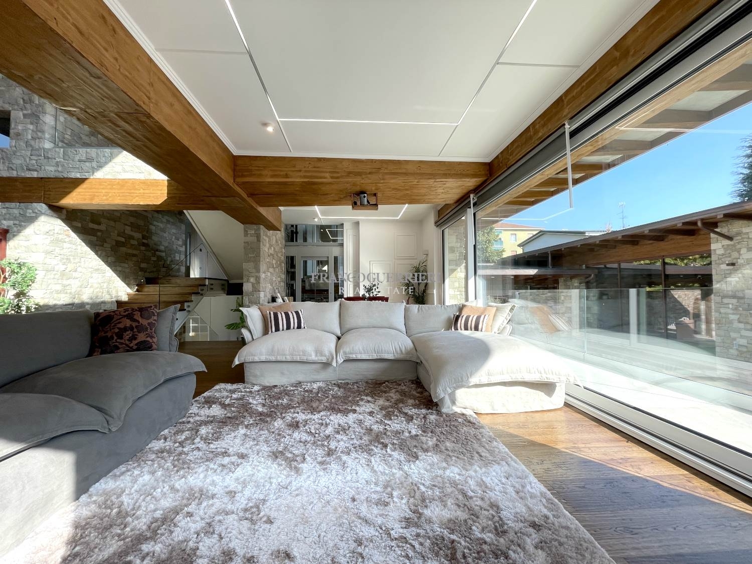 In una tranquilla zona residenziale, proponiamo una villa di recente costruzione dal design spettacolare e unico, che vanta una superficie utile complessiva di 577 mq ca.questa residenza progettata con attenzione ai dettagli e ai più alti standard di comfort, offre ambienti ergonomici e luminosi grazie a soluzioni architettoniche all'avanguardia.l'esterno è rivestito in pietra naturale, un elemento che si estende all'interno della casa, creando un armonioso legame con i dettagli in legno e le ampie superfici vetrate.l'ingresso principale si apre su un ampio salone a doppia altezza, impreziosito da un elegante lampadario che cattura lo sguardo e illumina l'ambiente. La disposizione su falsi piani conferisce movimento alla struttura, differenziando gli spazi con stile e funzionalità.procedendo verso la zona notte, troviamo due camere da letto e due bagni rifiniti in pregiato marmo. Salendo ancora, si accede a una splendida terrazza, perfettamente arredata per accogliere ospiti e ideale per godere di momenti di relax. Un ulteriore piano ospita la cucina e la sala da pranzo, con un design sofisticato e distintivo, pensato per esaltare la convivialità. Tutti i livelli sono comodamente collegati da una scala di design e da un ascensore in cristallo.dal salone principale, scendendo alcuni gradini, si raggiunge un'ampia sala attualmente adibita a area giochi per bambini, perfetta anche come terza camera da letto. Scendendo ancora, un grande spazio versatile può facilmente ospitare una camera supplementare con bagno. Il piano seminterrato include locali di sgombero, una lavanderia e stireria.la villa è circondata da un incantevole giardino, con un camminamento in pietra che conduce alla raffinata dependance, pensata come oasi benessere. Questa area spa comprende una piscina coperta riscaldata, bagno turco, sauna, bagno e un portico con jacuzzi, oltre a uno spazio perfetto per una palestra privata.l'immobile è dotato di riscaldamento a pavimento, aria condizionata canalizzata e un sistema domotico per la gestione intelligente dei servizi. I pannelli solari con batterie di accumulo e colonnine per la ricarica di veicoli elettrici completano questa residenza moderna, rendendola un autentico gioiello di stile e tecnologia.canone di locazione euro 120.000,00/anno.la proprietà viene proposta anche in vendita ad euro 2.600.000,00, con possibilità di acquistare ulteriore area di 300 mq, ideali per edificare un'ampia autorimessa con tre posti auto coperti e cinque posti auto scoperti, ad euro 200.000,00.indice di prestazione energetica in attesa di certificazione.note: le metrature sono del tutto indicative non potranno essere utilizzate come parte integrante in un eventuale contratto di vendita o locazione della proprietà. Classe energetica: non indicata
