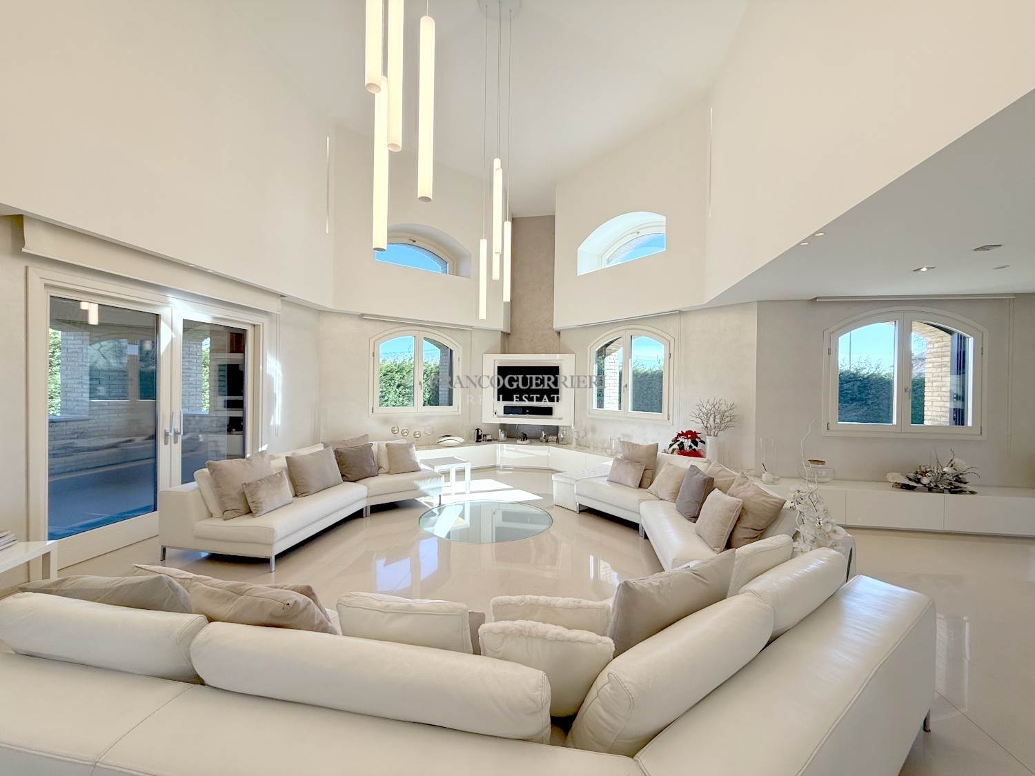 In posizione riservata e strategica, nel comune di mezzago, a pochi minuti da vimercate e comodamente collegata alle principali arterie stradali, tangenziali e aeroporti, proponiamo in vendita una prestigiosa villa singola di circa 900 mq, circondata da un meraviglioso giardino privato di circa 1.400 mq perfettamente curato, impreziosito da una piscina fuori terra.l'abitazione si sviluppa su due livelli fuori terra oltre a un ampio piano seminterrato e un ulteriore livello interamente dedicato ai servizi e alla parte tecnologica della proprietà, offrendo spazi generosi, comfort assoluto e soluzioni impiantistiche di alto livello. La facciata, realizzata in eterni mattoncini a vista, garantisce eleganza senza tempo e totale assenza di manutenzione.l'ingresso, scenografico e maestoso, conduce alla zona living caratterizzata da una spettacolare doppia altezza sopra il soggiorno, valorizzata da un importante lampadario a sospensione che dona grande personalità all'ambiente. Un dettaglio architettonico unico è l'oblò a pavimento, dal quale è possibile ammirare la piscina interna sottostante, creando un effetto di grande impatto visivo.la zona pranzo, ampia e luminosa, si integra perfettamente con la splendida cucina a vista, completa di ogni funzione ed elettrodomestico di ultima generazione. La scelta dell'open space favorisce convivialità e comfort, creando un'atmosfera calda ed accogliente. Sullo stesso livello troviamo inoltre una comoda dispensa e un elegante bagno ospiti.sempre al piano terra si sviluppa la grandiosa suite padronale, composta da salottino privato, area guardaroba, zona letto e un incantevole bagno con suggestivo soffitto a cielo stellato, pensato come autentica oasi di relax.la scenografica scala principale, impreziosita da giochi di luce swarovski, conduce al piano superiore dove si trovano due ampie camere da letto, entrambe dotate di bagno en suite. Al centro del vano scala è già prevista la possibilità di installare un ascensore, per garantire il massimo comfort abitativo.il piano seminterrato rappresenta uno spazio perfetto per il tempo libero e l'intrattenimento: un grande salone ideale per feste e ricevimenti, oltre a una straordinaria area wellness completa di piscina a ossigeno con idromassaggio, sauna, bagno turco, spogliatoi e servizi. Un'ulteriore ala dello stesso livello è dedicata a lavanderia e stireria e può facilmente essere trasformata in un piccolo appartamento indipendente per personale di servizio o ospiti.completa la proprietà una grande autorimessa direttamente collegata all'abitazione.una residenza esclusiva, ideale per chi desidera privacy, rappresentanza e comfort assoluto, senza rinunciare alla comodità dei collegamenti con milano e i principali servizi del territorio.classe energetica c eph 80,35 kwh/m2a.note: le metrature sono del tutto indicative non potranno essere utilizzate come parte integrante in un eventuale contratto di vendita o locazione della proprietà. Classe energetica: c epi: 80,35 kwh/m2 anno