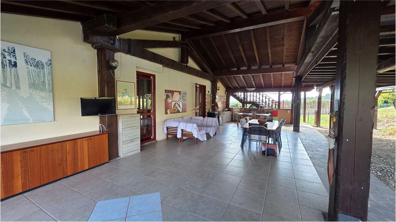 Sulle prime colline dell'oltrepò pavese , a castana (pv), affascinante borgo dove il tempo sembra essersi fermato, a soli 30 minuti da pavia e 1 ora da milano, proponiamo in vendita villa con ampio giardino.la villa indipendente di 230 mq e 2600 mq di giardino è immersa nel paesaggio delle prime colline dell' oltrepò pavese in un suggestivo mosaico di vigneti da cui nascono eccellenze vinicole italiane come la bonarda, il riesling, il pinot, il buttafuoco storico, il moscato e altro ancora.casa circondata dal verde dove c'è 'il rumore del silenzio', dove l'aria è diversa, dove hai le colline intorno a te e le montagne in lontananza. la casa è in una posizione soleggiata e riservata, ideale per chi cerca tranquillità, spazio e volendo una soluzione già predisposta per attività ricettiva con reddito immediato.la proprietà è stata edificata nel 1976, poi sono state fatte tre importanti ristrutturazioni sia esternamente che internamente dal 1996 al 2009.l'immobile ha una superficie totale di 230 mq su due piani più un ampio portico coperto di 115 mq e un giardino privato di 2.600 mq tutto recintato.le caratteristiche della casa:• infissi in legno con doppio vetro e zanzariere• caratteristiche inferriate con vetri antisfondamento• impianto elettrico fornito di due contatori, uno da 10 kw trifase ed uno da 6 kw • impianto fotovoltaico da 8 kw per il risparmio energetico• il riscaldamento è con caldaia a gas• tutte le camere e il salone sono pavimentati con parquet dussiè africa; il dussiè africa con le spettacolari tonalità rossastre è di una eleganza naturale, robusto e di lunga durata ed è anche un abbinamento ideale per ogni stile di arredo• grande camino nel salone• 'cappotto termico' esterno per il risparmio energetico• climatizzatori in tutta la casa• entrata principale con grande cancello elettrico telecomandato• grande giardino con ampi spazi per posteggiare auto e anche mezzi più grandi• raccolta acque piovane in grande cisterna• un antico roseto con qua e la tulipani e glicini• alberi da fruttaal piano terra veniamo accolti dall' ampio portico coperto e piastrellato, perfetto per momenti di divertimento e di relax all'aperto per diversi mesi all'anno.all'interno ci accolgono:• entrando dal portico, una spaziosa cucina attrezzata con elettrodomestici professionali in acciaio inox, con ampia finestra affacciata sul giardino esterno, dalla quale, come in una cartolina, si gode il panorama sulle colline circostanti, a servizio della cucina troviamo una ampia dispensa• dalla cucina un grande salone molto luminoso, grazie a due porte-finestre che danno sul giardino esterno e a due ampie finestre. Sia dalle porte-finestre che dalle due finestre si può ammirare il panorama delle colline circostanti, inoltre al centro del salone troviamo un grande camino a vista, perfettamente funzionante• collegate fra loro :o una camera matrimoniale con ampia porta finestra sul giardinoo una spaziosa cabina armadioo un bagno con vasca idromassaggioo un bagno con doccia con accesso al grande porticoo una lavanderia.al primo piano si può accedere sia da una artistica scala interna in legno, che da una scala esterna indipendente che arriva su un balcone panoramico con vista sulle colline.il primo piano e' composto da : • una camera junior con bagno privato e doccia, doccia svedese e cascata con panca • una camera senior con accesso all' ampio balcone e bagno privato con doccia• una suite con bagno privato con doccia, antibagno, possibilità di 4 posti letto nella parte alta del terreno e' posta una graziosa casetta in legno di circa 20 mq con piccolo portico, utilizzabile per deposito attrezzi o uso vario. Dal suo piccolo portico si gode di una bellissima vista sulla pianura padana e, nelle belle giornate soleggiate e limpide, delle alpi. i punti di forza della casa:•soluzione subito abitabile•possibilità di arredi inclusi•ottima sia come abitazione principale che residenza secondaria•pronta anche per una eventuale attività ricettiva con reddito immediatoquesta villa rappresenta un'opportunità unica per vivere in una delle zone più suggestive della lombardia, l' oltrepò pavese, territorio situato in pieno appennino ligure.contattaci per maggiori informazioni o per prenotare una visita.classe energetica: e 202,27 kwh/m3 a