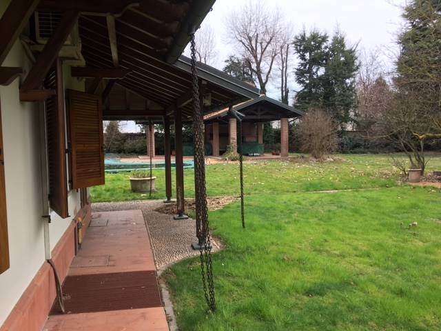 Immersa nel verde della lomellina in mortara citta' vendesi villa padronale su piu' livelli cosi composta da piano terra ampia cucina abitabile con camino, sala da pranzo e salone, due camere da letto e due bagni, disimpegni vari, altra camera con bagno annesso; al piano primo appartamento nobile: di circa 250 mq composto da cucina, sala da pranzo e ampio salone, libreria, disimpegni, office, 3 camere letto e due bagni; piano mansardato adibito a lavanderia, stireria e guardaroba, bagno; detto piano puo' essere adibito ad abitazione; la villa e' cantinata di mq. 80 circa; esiste un corpo staccato dalla villa adibito a ricovero attrezzi di circa 80 mq e adiacente casa del custode (appartamento al piano terra ristrutturato), 5 garage; 2 canili; parco di circa 3.000 mq; piscina con spogliatoi e bagno con doccia, zona porticato adiacente alla piscina in pietra a vista con barbecue, forno, frigo e fuochi; impianto di irrigazione automatizzata, antifurto interno ed esterno perimetrale; ottime rifiniture porte in rovere ecc..... Trattativa riservata e informazione su appuntamenti in studio.la presente scheda non costituisce elemento contrattuale, pertanto le informazioni riportate quali descrizione, planimetrie, misure, posizione sono da ritenersi del tutto indicative. Non potranno quindi essere utilizzate come parte integrante in un eventuale contratto di vendita della proprietà. La presente scheda non vincola in alcun modo la società. Classe energetica: g