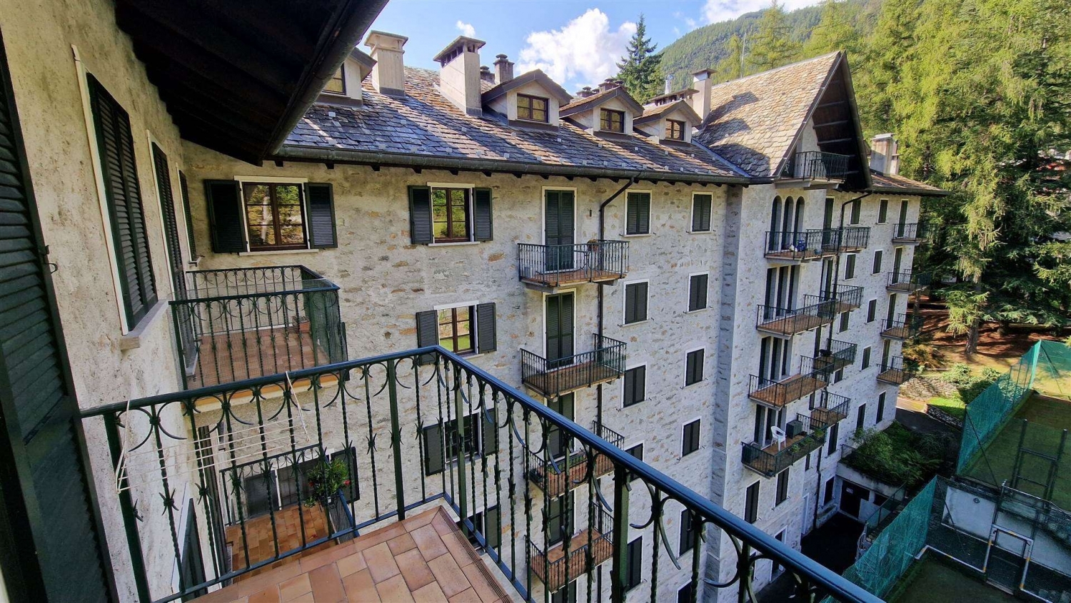 All'interno dello storico complesso residenziale 'grand hotel malenco' proponiamo in vendita bilocale al quarto piano servito da ascensore, cosi composto: ingresso in una luminosa zona giorno con angolo cottura a scomparsa, camino e balcone panoramico con splendida vista sulle montagne. Troviamo poi un soggiorno singolo con finestra, che si può anche adibire a seconda camera, oltre al servizio con doccia. Nella zona giorno è presente una scala che porta al piano soppalco dove si trova la zona notte composta da un open space con letto matrimoniale e un ampio vano sottotetto con due letti aggiuntivi. Al piano terra è presente un deposito sci privato. Il condominio offre numerosi servizi, tra cui campi da tennis e bocce, una sala comune, un parco giochi e un ampio giardino immerso nella pineta. La posizione è tranquilla e riservata, ma allo stesso tempo comoda per raggiungere il centro del paese. Ideale come casa vacanze o investimento. per maggiori informazioni o per fissare una visita, guido classe energetica: f