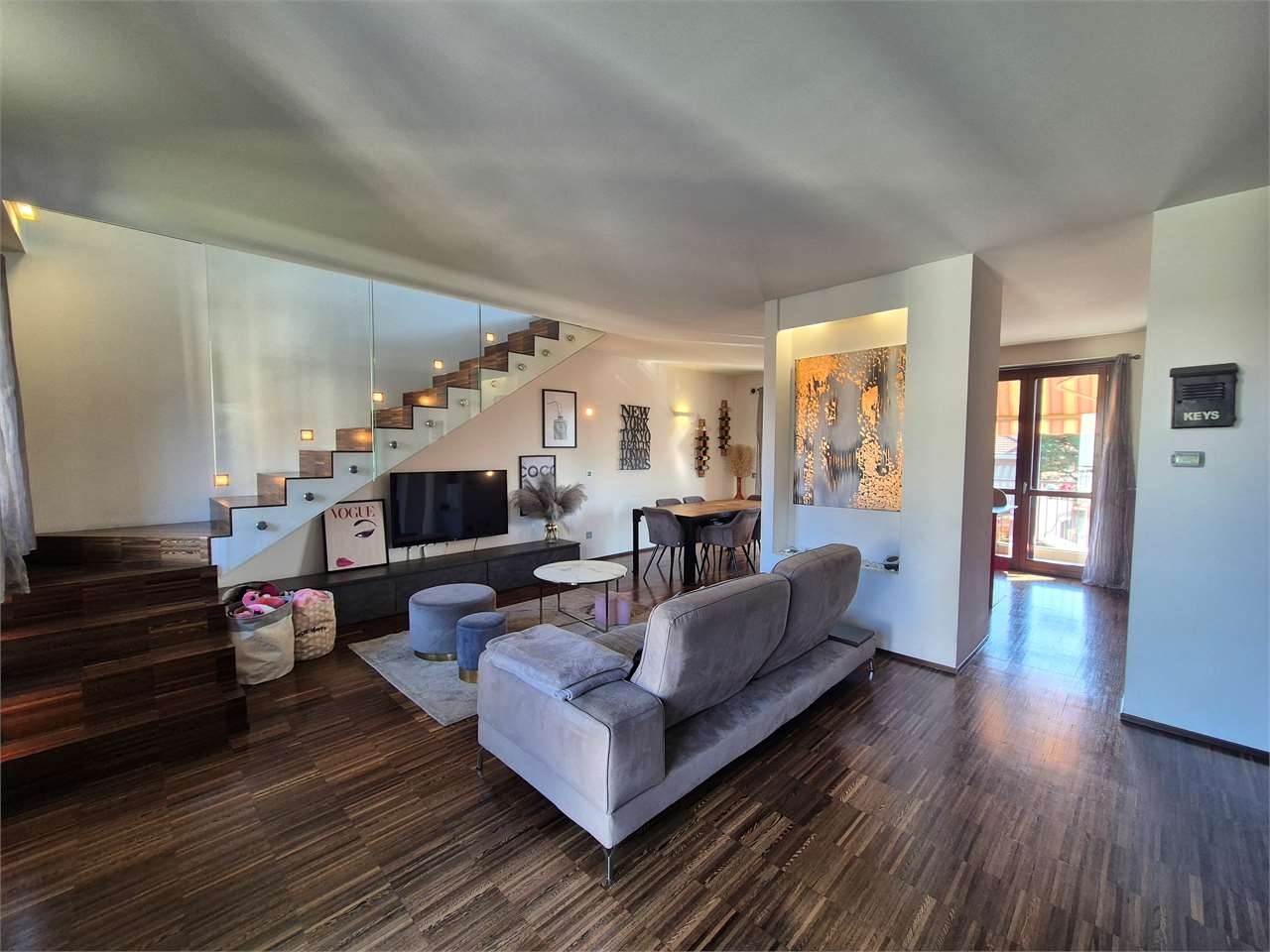 ​in un curato contesto residenziale edificato nel 2014, proponiamo in vendita un luminoso appartamento disposto su due livelli, situato al secondo e ultimo piano e comodamente servito da ascensore. L'abitazione si sviluppa su una superficie di circa 140 mq e gode di una privilegiata doppia esposizione est-ovest, che garantisce ambienti ariosi e luce naturale durante tutto l'arco della giornata.​l'ingresso principale avviene tramite un portoncino blindato che immette in un soggiorno spazioso e accogliente, caratterizzato da una moderna cucina a vista e dall'affaccio su due balconi. Il piano è completato da un funzionale e ampio ripostiglio e da un primo bagno rifinito con doccia. Una comoda scala interna conduce al piano superiore, dove veniamo accolti da un generoso openspace ideale come locale hobby o zona relax, affiancato da ulteriori due locali separati e da un secondo servizio, offrendo cosù una distribuzione degli spazi versatile e ben organizzata.​l'immobile si distingue per l'alto livello delle dotazioni tecnologiche e del comfort abitativo. Il riscaldamento è a pavimento con caldaia centralizzata e termovalvole, gestito in totale autonomia grazie a due termostati separati per i due piani. La proprietà è inoltre arricchita da un impianto di filodiffusione presente in ogni stanza, aria condizionata nella zona notte, zanzariere su tutti gli infissi e tende da sole elettriche. La sicurezza e la praticità sono garantite dalla predisposizione per l'antifurto, dal videocitofono anche al piano superiore e dalla serranda del box completamente automatizzata.​completano la proposta una rara dotazione di pertinenze, che comprende ben tre cantine e un'autorimessa doppia in lunghezza con basculante elettrica. Le spese condominiali, pari a circa €180 mensili (escluso il riscaldamento), assicurano una gestione impeccabile dello stabile: oltre alle voci ordinarie come amministratore, assicurazione e pulizia degli spazi comuni, è incluso un prezioso servizio di movimentazione dei bidoni dei rifiuti effettuato tre volte a settimana, un dettaglio che semplifica notevolmente la gestione quotidiana.​una soluzione abitativa moderna, completa di ogni accessorio e pronta per essere vissuta.classe energetica: b