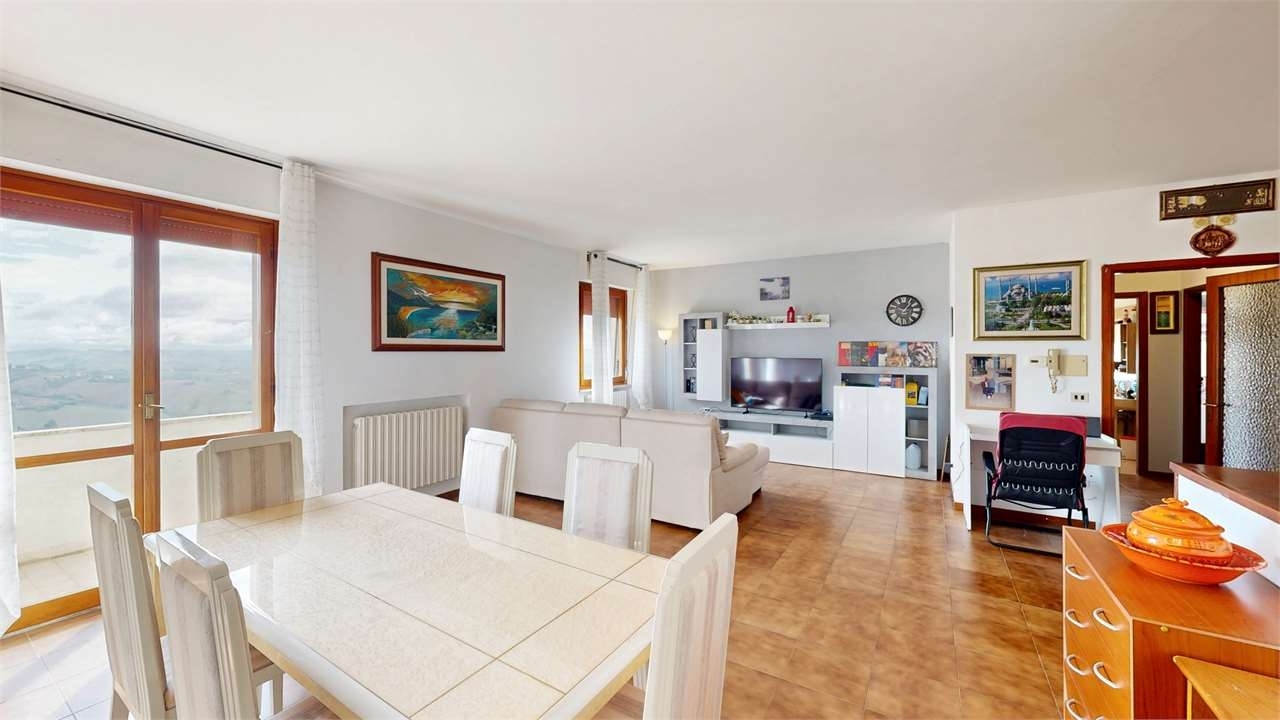 Filottrano - a ridosso del centro, in posizione tranquilla e super panoramica, in piccolo condominio, vendiamo ampio appartamento con mansarda. Al primo piano rialzato del fabbricato, troviamo l'abitazione, molto accogliente con l'ingresso direttamente nel salone open space, affacciato sul balcone panoramico sui sibillini, di fronte ci aspetta la cucina abitabile, con altro balcone ed uno splendido caminetto pronto per le 'griglie'. La zona notte è composta da 2 camere matrimoniali, la cameretta, un bagno ed il ripostiglio. Al piano superiore ed ultimo, accessibile dalla scala condominiale, una soffitta di pari grandezza dell'abitazione, per metà utilizzata a ripostiglio / deposito, mentre per la restante parte di 50 mq., quella più vivibile con altezze dai m. 1,50 ai m. 3,70, è stato adibito a seconda abitazione con ampio soggiorno con angolo cottura e camino, camera matrimoniale e bagno.la proprietà si completa con una comoda cantina al piano terra, dove è allocata la caldaia ed attiguo il box auto doppio.tutta la soluzione si presenta in buono stato di manutenzione mentre la palazzina, sarà oggetto di manutenzione straordinaria alle facciate esterne, con costi a carico della parte venditrice.ottima soluzione per famiglie numerose a due passi dal centro o ideale per arrotondare le entrate mettendo a reddito la parte superiore. Chiamateci per un sopralluogo!!rif. V000833virtual tour: https://my.matterport.com/show/?m=uggv2ubddn7classe energetica: gcontatto diretto o classe energetica: g