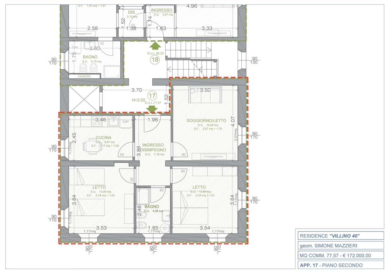 Rif.054sp-17residence villinoin vendita appartamento di circa 77 mq commerciali, completamente ristrutturato e pari al nuovo, progettato per garantire comfort, efficienza e uno stile contemporaneo.la soluzione si compone di disimpegno su cui affacciano soggiorno e cucina abitabile separati, due camere matrimoniali e un bagno.gli spazi sono luminosi, ben distribuiti e studiati per valorizzare ogni ambiente. Una scelta ideale per giovani coppie, single che desiderano indipendenza con stile, investitori alla ricerca di un immobile da mettere a reddito o chi, semplicemente, vuole smettere di pagare un affitto e acquistare casa.nel prezzo è incluso un posto auto, con possibilità di aggiungere una cantina e un secondo posto auto. Il contesto è tranquillo, completo di ampi spazi esterni condominiali, ben servito e strategico, perfetto per chi cerca qualità abitativa e comodità quotidiana.l'immobile fa parte di un intervento di riqualificazione che comprende 24 unità rinnovate integralmente, tutte in classe energetica a, dotate di impianti full electric e pannelli fotovoltaici che assicurano sostenibilità, consumi ridotti e un'elevata qualità abitativa. La palazzina è servita da ascensore.mandato a titolo oneroso. Nessuna provvigione dovuta da parte dell'acquirente.se sei interessato a questo immobile, il riferimento è 054sp-17 contattaci indicando questo riferimento per avere tutte le informazioni che ti interessano.il nostro numero di telefono è oppure invia una mail a nostri agenti sono a tua completa disposizione!classe energetica: a