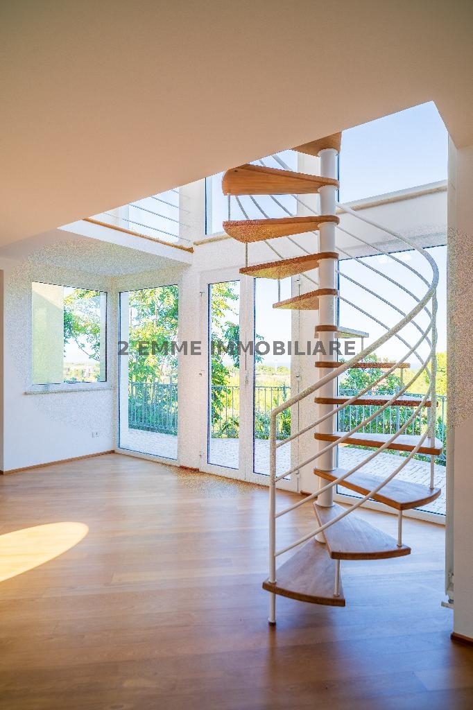 Meraviglioso attico in villa con vista panoramica mozzafiato sul mare e sulle colline marchigiane. L'immobile si presenta completamente ristrutturato con materiali di pregio. Doppio ingresso, quello principale dall'atrio condominiale e un secondario dal rustico.