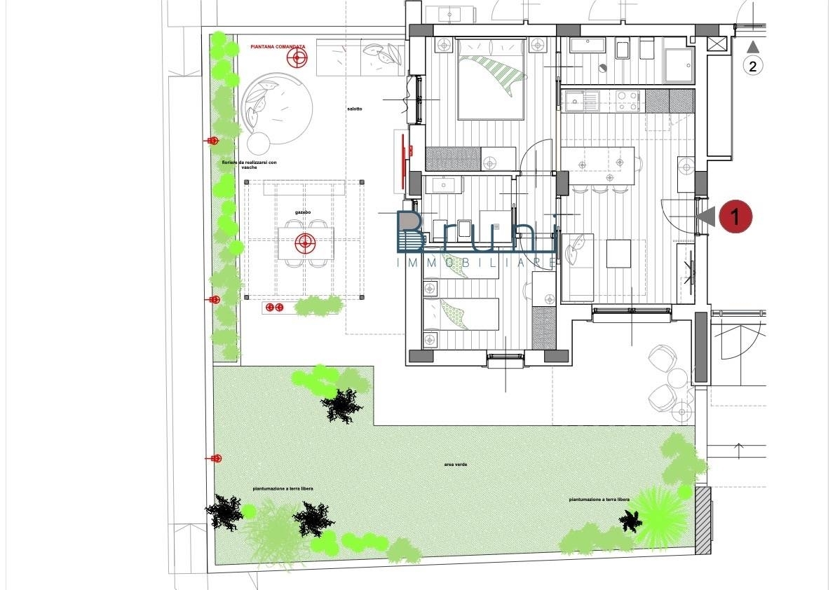 Agenzia bruni immobiliare propone: appartamento di nuova costruzione in vendita nelle marche, in provincia di ascoli piceno, nel comune di san benedetto del tronto, di circa di 60 mq posto al piano terra.composto da: ingresso su soggiorno con cucina a vista, due camere da letto di cui una matrimoniale, una doppia, due bagni di cui uno finestrato con cabina doccia, uno ad areazione forzata con cabina doccia, oltre a corte esterna in parte pavimentata di circa 106 mq.l'appartamento in oggetto si presenta in ottime condizioni, con pavimentazione in gres taglio parquet su tutta la superficie, tapparelle motorizzate, infissi in alluminio con doppio vetro, aria condizionata, riscaldamento a pavimento, caldaia a condensazione, videocitofono.possibilità di garage o posto auto da computare a parte.ubicato in seconda fila mare.