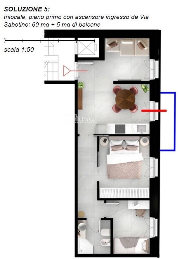 L'agenzia re casa immobiliare propone in vendita trilocale sito a san benedetto del tronto, zona centrale e servita, a 500 mt dal mare e 100 mt dall'ospedale, vicinissima ai principali servizi.trilocale al piano primo, con ascensore di 60 mq, con ingresso autonomo composto da ingresso su soggiorno con cucina open-space, una camera da letto matrimoniale, una cameretta, un bagno con doccia con areazione forzata, e balcone di 5 mq.la parte acquirente potrà se richiesto apportare modifiche inerenti la distribuzione interna degli spazi, secondo le proprie necessità, scelta dei materiali ed eventuali personalizzazioni.attualmente in fase di totale ristrutturazione, rappresenta un'opportunità unica per chi desidera acquistare una nuova casa dalle finiture moderne e di qualità, ed altra efficienza energeticasituato al piano primo di una piccola palazzina, l'immobile è stato costruito negli anni '80 ed in corso la totale ristrutturazione per rispondere alle esigenze attuali, consegna entro fine 2026.il comodo ingresso, lo rende adatto anche a persone con mobilità ridotta.possibilità di acquistare a parte garage, posto auto e fondaco.grazie alla sua posizione strategica e alla vicinanza a tutti i servizi, negozi e mezzi di trasporto, ospedale, rappresenta una soluzione ideale per chi cerca un appartamento funzionale e comodo da vivere, per professionisti o turisti.non perdere l'occasione di acquistare un appartamento moderno e di qualità in una delle zone più ricercate di san benedetto del tronto.