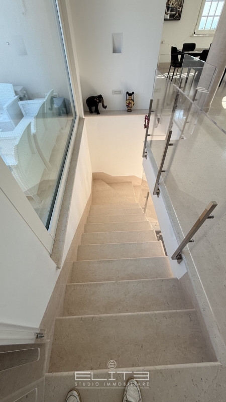 Nel prestigioso contesto residenziale ovest grotte montarice di porto recanati, elite studio immobiliare propone in vendita in esclusiva una residenza unica nel suo genere, capace di coniugare design contemporaneo, comfort assoluto e una vista mare che lascia senza fiato.costruita nel 2016 su un lotto privato di circa 1.000 mq, questa villa rappresenta una soluzione ideale per chi desidera vivere in totale privacy, immerso nel verde, senza rinunciare alla vicinanza al mare e ai servizi.la proprietà si sviluppa su tre livelli per una superficie complessiva di 596 mq, offrendo ambienti ampi, luminosi e perfettamente distribuiti. Al piano terra si trova la zona notte, composta da tre camere matrimoniali, tutte dotate di cabina armadio e bagno en suite, con accesso diretto all'area esterna e alla piscina: una continuità naturale tra interno ed esterno che rende ogni spazio estremamente vivibile.salendo al primo piano si apre una spettacolare zona living di circa 150 mq, caratterizzata da grandi vetrate panoramiche che incorniciano il mare adriatico. Qui la cucina moderna dialoga armoniosamente con il soggiorno, impreziosito da un elegante camino a gas, mentre il terrazzo abitabile diventa il luogo perfetto per cene all'aperto e momenti di relax al tramonto.il piano seminterrato, raffinato e sorprendentemente luminoso grazie alle ampie superfici vetrate, è dedicato al benessere e alla convivialità. Troviamo una seconda cucina con camino a legna, una lavanderia, una sala home cinema e una zona spa privata completa di jacuzzi®, doccia multisensoriale, bagno turco e cromoterapia: un vero angolo di relax esclusivo direttamente in casa.all'esterno, la villa è circondata da un elegante giardino con patio pavimentato che accompagna verso la piscina in mosaico con giochi d'acqua e area solarium riservata. L'architettura, con le sue linee armoniose e le balconate bianche, richiama uno stile signorile e senza tempo, valorizzato da finiture di altissimo livello.la posizione è uno dei punti di forza: porto recanati è una delle località più apprezzate della costa marchigiana, con spiagge bandiera blu, un lungomare vivace ma elegante e la vicinanza alla riviera del conero e ai suoi borghi.una proprietà esclusiva, senza spese condominiali, perfetta sia come residenza principale sia come prestigiosa casa vacanze.alcune immagini mostrano possibili soluzioni di personalizzazione degli ambientinon lasciarti sfuggire questa rara opportunità: contatta oggi stesso l'agenzia elite per ricevere maggiori informazioni o fissare una visita guidata! vivi finalmente il sogno della tua dimora esclusiva vista mare nelle marche.