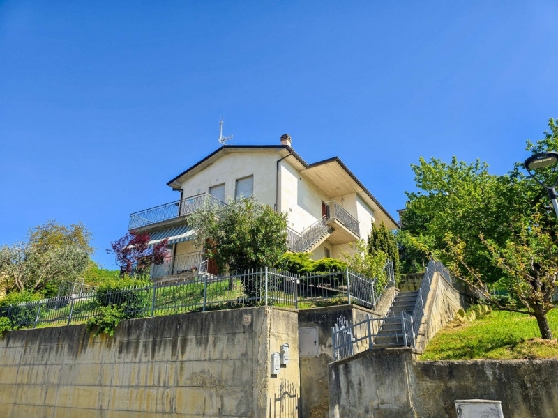 Situata all'interno di una zona residenziale tranquilla vendesi appartamento in villetta bifamiliare a macerata feltria. La proprietà è posizionata lungo via xxv aprile, una strada interna ad uso residenziale priva di traffico distante poche centinaia di metri dal centro di macerata feltria e da tutti i servizi essenziali.l'accesso all'abitazione avviene da scala esterna ad uso esclusivo che conduce al piano primo e quindi ad un piccolo disimpegno che funge da ingresso all'intera zona giorno. Alla destra del portone è posizionata la cucina con camino in muratura, penisola a l e passavivande verso l'adiacente soggiorno ampio soggiorno con balcone affacciato sul fronte dell'abitazione. La zona notte si sviluppa verso il retro della casa attorno ad un disimpegno centrale e risulta separata dalla zona giorno da una porta in legno. Partendo dal lato destro troviamo due camere da letto con balcone condiviso, il bagno principale e la camera padronale con balcone privato e bagno en-suite.l'appartamento è dotato di impianto di riscaldamento autonomo con radiatori a parete, oltre che di uno split per l'aria condizionata. L'unità si trova in buone condizioni di manutenzione ed è fin da subito abitabile.all'interno della proprietà anche un garage privato con accesso da rampa carrabile condivisa raggiungibile direttamente dalla via pubblica e protetto da un cancello automatico.
