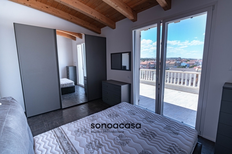 A marotta, nella città del 'mare d'inverno', l'agenzia sonoacasa propone in vendita elegante appartamento al terzo piano di un edificio di recentissima costruzione nel cuore della piazzetta principale, a soli 50 metri dalla spiaggia. l'appartamento, dal design moderno e funzionale, è particolarmente luminoso ed accogliente, grazie alle ampie vetrate presenti sia nella zona giorno che nella camera padronale. Le travi in legno visibili sul soffitto aggiungono un tocco di calore alla modernità della casa, mentre la terrazza panoramica rappresenta sicuramente il suo fiore all'occhiello; qui potrai godere non solo della vista mare ma anche della vista sulle colline circostanti! la disposizione degli spazi interni consente una vivibilità ottimale: dall'open space, accogliente e luminoso, alla zona notte in cui troviamo due camere da letto e due bagni. Ottime le dotazioni moderne: in classe energetica a4, l'immobile dispone: di riscaldamento a pavimento, per creare ambienti sempre caldi e accoglienti nei mesi più freddi; pannelli solari per ridurre l'impatto ambientale; tripli vetri che assicurano isolamento acustico e termico eccellente; aria condizionata per rinfrescarti durante le giornate estive. Uno spazioso garage di circa 18mq con apertura motorizzata a telecomando e porta separata. marotta si distingue come meta turistica sempre più apprezzata dai visitatori nazionali ed internazionali grazie alla sua tranquillità unica anche durante i periodi più affollati dell'estate. Il lungomare offre la possibilità di piacevoli passeggiate sia sulla spiaggia che lungo la pista ciclabile, arricchita dai famosi mosaici colorati! non mancano spiagge attrezzate, negozi, ristoranti caratteristici; ma anche manifestazioni musicali e culturali, sagre, spettacoli estivi, sia nella zona mare che nel centro storico del comune di mondolfo. Grazie alla posizione strategica avrai inoltre facili collegamenti verso le vicine cittadine di senigallia e fano, nonchè verso i borghi dei comuni dell'entroterra marchigiano. per chi fosse interessato, è prevista la possibilità di acquistare box privato. Cosa aspetti? se pensi sia la soluzione giusta per te, non esitare a contattarci per prenotare la tua visita. (video in galleria)benvenuto in un nuovo concetto di consulenza immobiliare. Sono elisabetta, titolare & legal specialist dell'agenzia sonoacasa studio immobiliare: un team di sole donne, professioniste e con specifiche competenze, che ti guiderà nella ricerca del luogo in cui 'essere a casa'. Per questa o altre soluzioni, contattaci telefonicamente oppure passa a trovarci! siamo a marotta, in via litoranea 154.