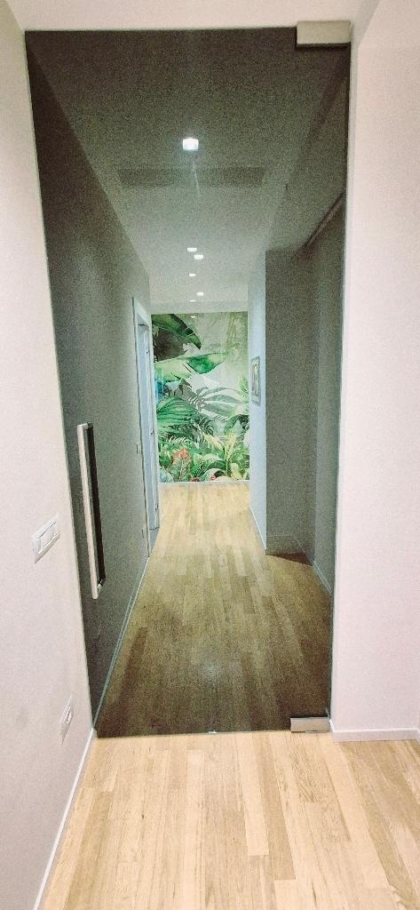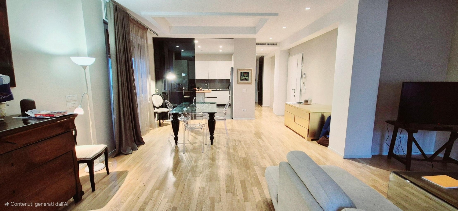 l'immobile gode di grande luminosità ed è ubicato al secondo piano con ascensore in signorile contesto condominiale, cosù composto: ingresso, grande soggiorno con balcone e ampia cucina con isola centrale open space (possibilità di dividere gli ambienti della zona giorno e zona notte tramite elegantissime porte scorrevoli e non di vetro fumè), doppio corridoio arredato con preziosa carta da parati jungle, 4 camere da letto di cui una matrimoniale (tutte quattro le camere affacciano nel grande terrazzo che le collega), 2 grandi bagni finestrati, una lavanderia finestrata e un ampio ripostiglio sempre finestrato, completano la proprietà due cantine esclusive al piano interrato.