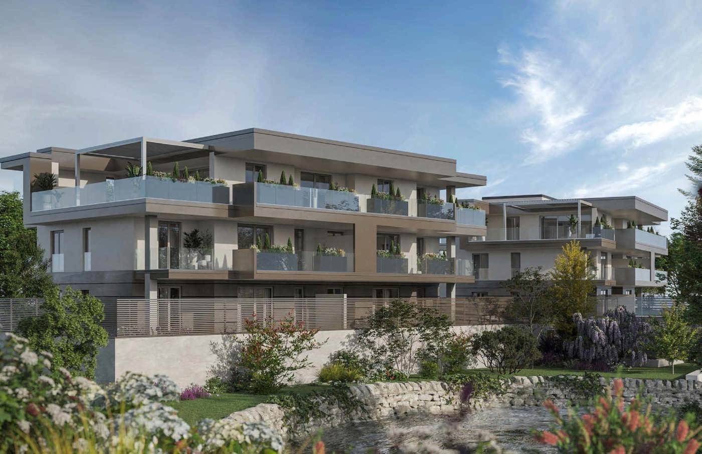 Arona - residenze auraelegante trilocale di 91 mq posto al piano terra con doppio giardino di 61,74 mq collegato da camminamento su tre lati.l?ingresso conduce al luminoso living open space con cucina a vista. Dal disimpegno si accede alla zona notte, composta da camera singola, camera matrimoniale e un bagno completo di tutto. L?ampio giardino privato circonda l?abitazione e l?affaccio su di esso è presente in 2 locali, conferendo una connessione esclusiva tra spazi interni ed esterni. Completa la soluzione immobiliare la possibilità di box auto e cantina di diverse ampiezze. contattateci per richiedere ulteriori informazioni.