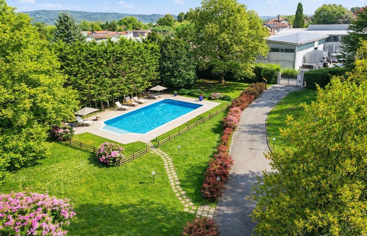 Elegante villa di importante metratura sita in uno splendido parco privato, a pochi minuti da arona e dalle spiagge del lago maggiore. Nella verdeggiante zona collinare di dormelletto, vendesi raffinata dimora di circa 1000 mq abbracciata da un magnifico giardino di oltre 12000 con piscina e gazebo.signorile zona giorno con accesso al porticato e vedute verso il parco, sala da pranzo, grande cucina in legno massello, bagno di servizio, camera da letto padronale con bagno interno e altre tre camere con il proprio servizio- al piano rialzato; studiolo al mezzanino; ampia mansarda composta da due appartamenti (uno per i domestici e l altro, più ampio e modernissimo, con grande terrazzo- per gli ospiti)-al piano primo. Taverna con angolo bar, sala relax- pianoforte, zona pranzo con cucina (forno a legna) e sala biliardo. spazioso porticato vivibile con barbecue e salotto pregiato, da cui ammirare le fantastiche vedute sul giardino piantumato ad essenze pregiate!garage doppio, cantina e lavanderia.eccezionali finiture, interni molto raffinati e accoglienti e perfettamente manutenuti (parquet, affreschi, camini, barbecue), aria condizionata, allarme, videocitofono.dimora ideale per una grande famiglia che desidera tranquillità e natura a pochi minuti dal lago maggiore. a meno di un'ora da milano, non cosi distante da un altro gioiello unico come il lago d'orta e abbastanza vicina ad alcune delle cime piu affascinanti della nostra italia ( e della svizzera). Arona deve il suo nome alle genti celto-galliche e significa 'sasso sull'acqua'. Un nome, un'immagine emblematica e poetica.il maggior porto del lago maggiore, arona è una deliziosa città lacustre che quasi si insinua nell'acqua con il suo lungo lago in parte tondeggiante, attorno a un centro storico dalle abitazioni strette circondato da verdeggianti boschi.la splendida cittadina di arona sorge nella parte meridionale del lago maggiore, in posizione strategica e di fronte al suggestivo castello di angera. Il suo caratteristico centro storico permette al visitatore di curiosare nei numerosi boutiques e di frequentare eleganti ristoranti e bar. arona fu il primo feudo della famiglia borromeo sul lago maggiore poiché possedeva storia, è impossibile non restarne incantati. bellissima la passeggiata e la zona lido!ottimo collegamento con milano e malpensa. arona il sasso sul acqua è una destinazione turistica elegante, bella e tranquilla. real estate tel: ; cell: la splendida cittadina di arona sorge nella parte meridionale del lago maggiore, in posizione strategica e di fronte al suggestivo castello di angera. Il suo caratteristico centro storico permette al visitatore di curiosare nei numerosi boutiques e di frequentare eleganti ristoranti e bar. arona fu il primo feudo della famiglia borromeo sul lago maggiore poiché possedeva storia, è impossibile non restarne incantati. bellissima la passeggiata e la zona lido!ottimo collegamento con milano e malpensa. un castello, la rocca di arona, di grande importanza militare per il controllo dei traffici sul lago. vivace e affascinante in tutte le stagioni, la cittadina offre un'ottima qualità della vita e tutti i servizi necessari alla famiglia.certificazione energetica in fase di definizione- probabile classe d o e.