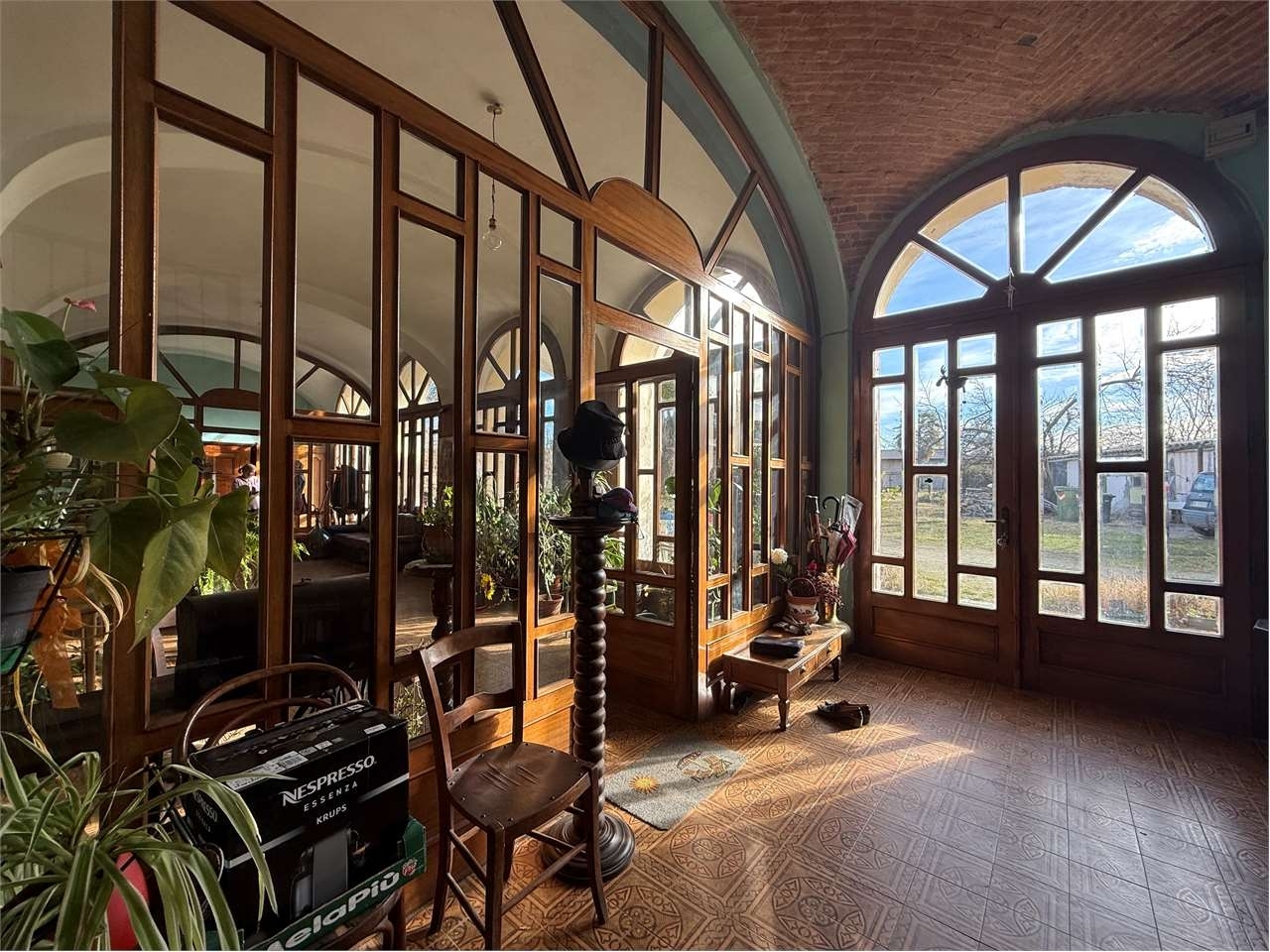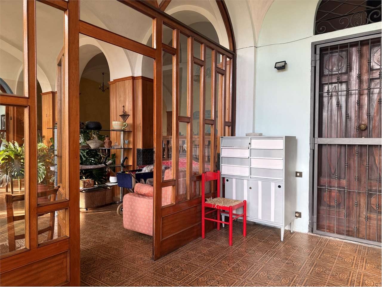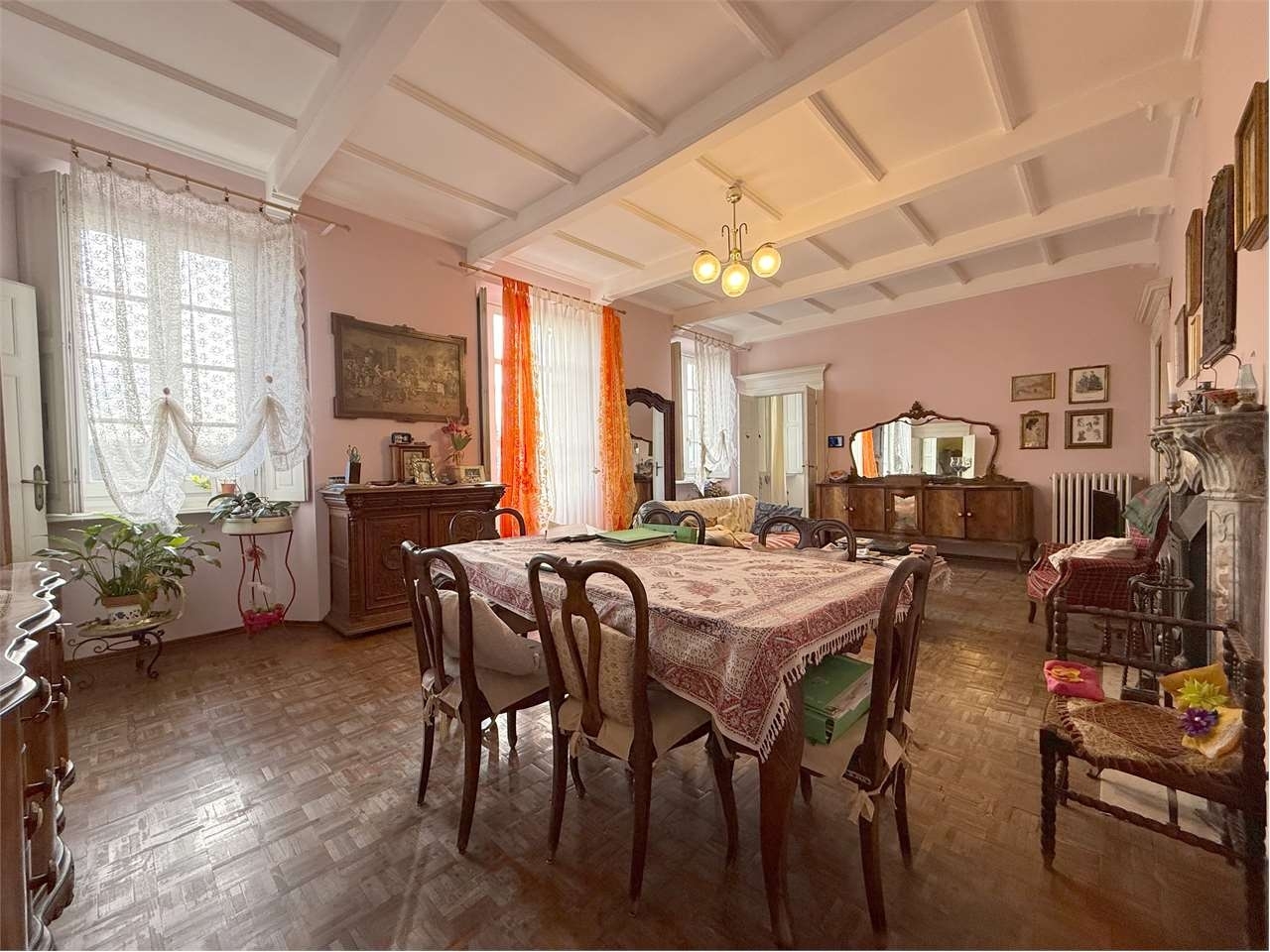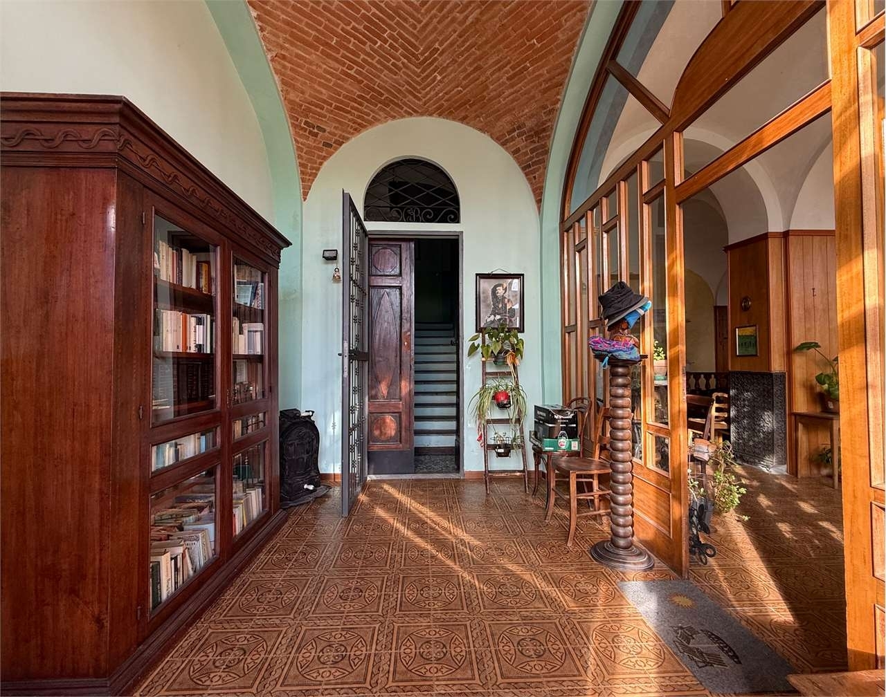 Nel cuore del paese, ampio casale signorile del 1786 con terreno di proprietà esposto a sud.la soluzione è eretta su tre livelli fuori terra, oltre che un piano interrato, e si compone di:- al piano terra ampio salone con camino, luminosa veranda con vetrate, doppio ingresso e locale ad uso sgombero;- al piano primo ingresso su disimpegno, salone con camino ed accesso sul terrazzo con vista panoramica, cucina abitabile, tre camere di cui una con servizi privati, bagno con piatto doccia e vasca e ampio locale ad uso sgombero in cui è possibile recuperare altri due vani;- al piano secondo quattro locali adibiti a sottotetto ed uno a sgombero;- al piano interrato due cantine e la centrale termica.i tre piani della casa sono collegati fra loro mediante due scale interne, mentre alla cantina è possibile accedere grazie alla scala presente in uno dei due ingressi del piano terra.a concludere la proprietà, all'esterno, un locale ad uso deposito, una tettoia e circa 600 mq di terreno pianeggiante.il riscaldamento è a mezzo di radiatori in ghisa alimentati da caldaia a condensazione a metano del 2006 che fornisce anche l'acqua calda sanitaria.gli infissi sono stati sostituiti tra il 20042005 e sono in legno.il tetto è in coppi è stato completamente rivisto nel 2004.la casa è allacciata alla rete fognaria comunale ed alla rete idrica, è presente un pozzo privato.classe energetica: f 261,46 kwh/m2 a