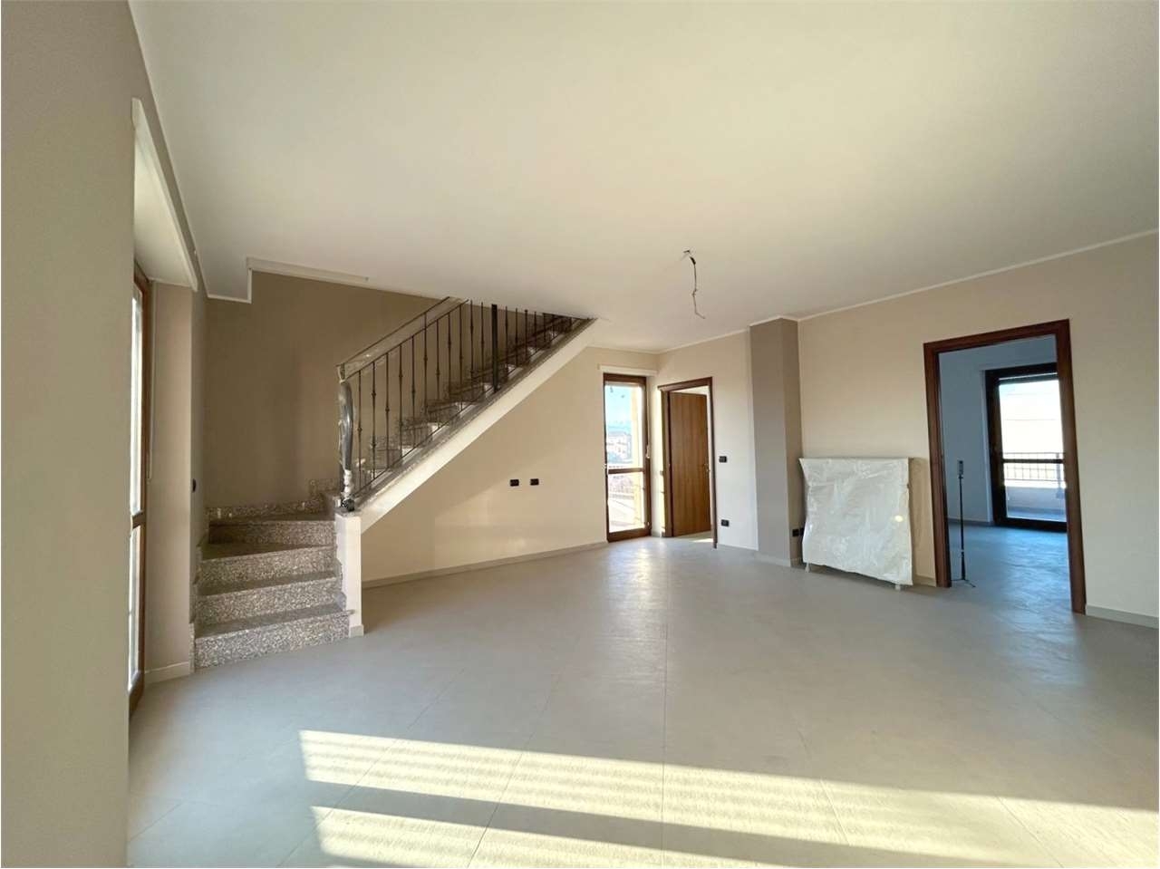 In condominio di recente costruzione, proponiamo in vendita attico su due livelli con spettacolari terrazzi panoramici!al piano secondo troviamo la zona giorno dell'appartamento composto di soggiorno living luminosissimo, cucina, studio/sala da pranzo, bagno; sia il salone che la cucina si affacciano su dei bellissimi terrazzi ben esposti e riservati.dal soggiorno tramite una comoda scala interna, si accede al piano mansardato abitabile composto di disimpegno tre camere, bagno; anche la zona notte ha uscita diretta su splendido terrazzo disposto su tutte e tre i lati.impianto fotovoltaico; riscaldamento a pavimento collegato al teleriscaldamentofiniture prestigiose, antifurto perimetrale e impianto per l'aria condizionata.completa la proprietà una cantina al piano seminterrato.possibilità di acquisto di un box di ampie dimensioni a €25.000.classe energetica: c 144,43 kwh/m2 a