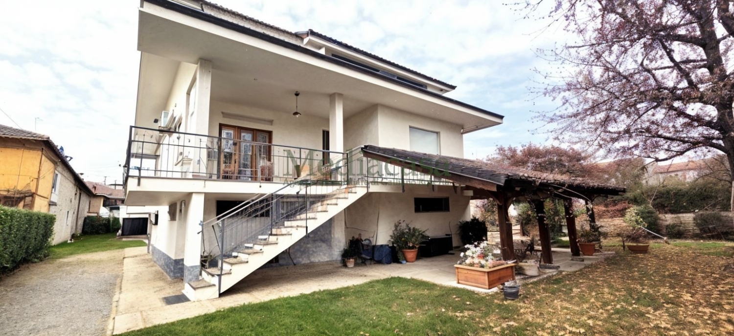 In posizione centrale ma riservata proponiamo in vendita ampia villa indipendente libera su 4 lati, ideale per chi desidera privacy, comfort e grandi spazi abitativi. La proprietà è composta da due unità abitative indipendenti collegate da scala interna, attualmente utilizzata come soluzione unifamiliare. Al primo piano si trovano ingresso, soggiorno con angolo cottura, 3 camere e doppi servizi, mentre al p. Superiore è presente una seconda unità con ingresso su ampia zona giorno open space, all'interno della quale è stata ricavata anche una zona notte, oltre a cucina abitabile con zona pranzo e bagno. La distribuzione interna consente con facilità sia il mantenimento dell'attuale configurazione sia la trasformazione in bifamiliare; si precisa che due vani del primo piano risultano catastalmente accorpati all'unità del 2°piano. Completano la proprietà 3 autorimesse, 2 magazzini, una depandance, un rustico adiacente e una splendida area verde privata di circa 2.600 mq con travata, ideale per il relax e la convivialità all'aperto. Soluzione unica per metratura e grado di indipendenza, comoda a tutti i principali servizi del centro. Riscaldamento autonomo a metano. Prezzo comprensivo di arredamento. Certificazione energetica in corso di svolgimento.