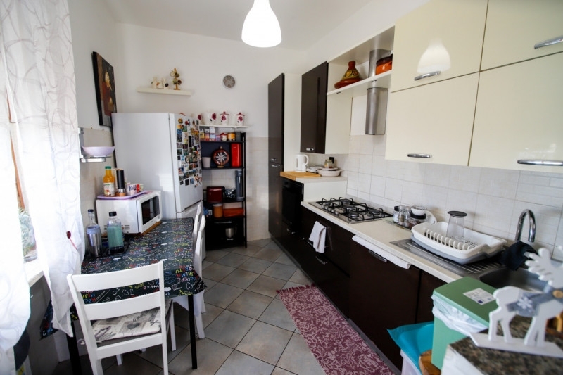 Kasa mia immobiliare propone in vendita situato al quarto piano di un condominio dotato di ascensore e comodo a tutti i servizi.l'alloggio è cosù composto: ingresso su disimpegno che conduce a un'ampia zona giorno formata da soggiorno con cucina a vista, particolarmente luminosa grazie alla porta-finestra che dà accesso all'ampio balcone e alla favorevole esposizione solare. La zona notte è composta da due camere da letto, entrambe con balcone, bagno e ripostiglio.l'appartamento è stato completamente ristrutturato; gli infissi sono a doppio vetro e il riscaldamento è semi-autonomo a metano.si precisa che le spese condominiali sono comprensive del consumo di riscaldamentocompleta la proprietà il box auto, il posto auto e la cantina.