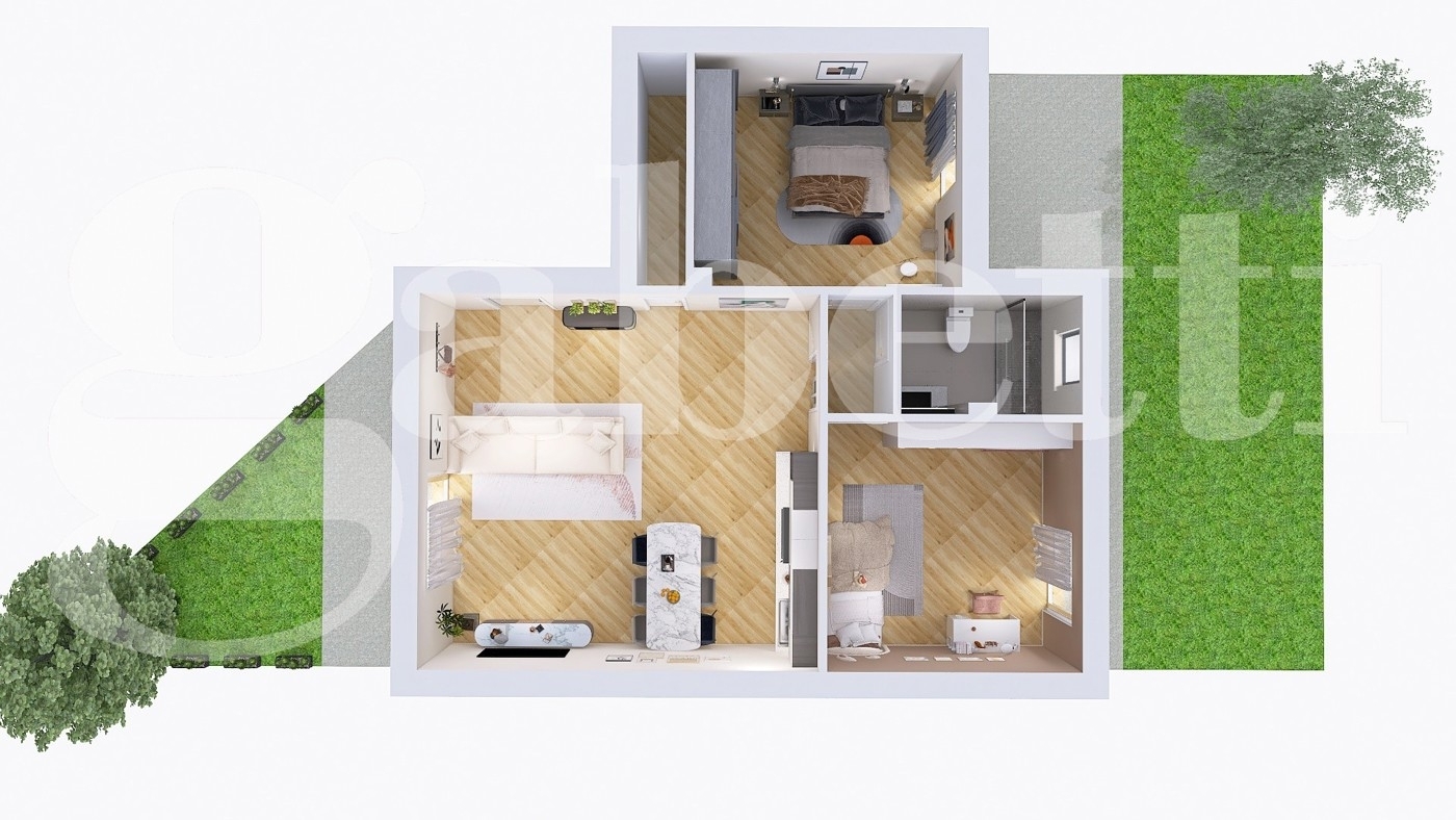 Appartamento con giardino in complesso residenziale progettato per offrire soluzioni moderne e funzionali proponiamo appartamento con giardino e locale di sgombero sfruttabile come tavernetta. L?inizio cantiere e previsto per novembre 2025. l?alloggio si presenta con ingresso living su ampia zona giorno, disimpegno, due camere da letto e un bagno. La zona giorno si affaccia su un giardino riservato, mentre la zona notte dispone anch?essa di un secondo giardino privato. Una scala in muratura conduce al piano seminterrato dove troviamo un ampio locale di sgombero sfruttabile come tavernetta, una lavanderia e un box. tutte le unità saranno realizzate in classe energetica a+ e dotate di riscaldamento a pavimento, pompa di calore e impianto fotovoltaico indipendente per ogni abitazione, garantendo comfort e massima efficienza energetica. L?ottimo capitolato permetterà di personalizzare gli alloggi secondo il proprio gusto, scegliendo pavimenti, rivestimenti e porte interne. ? 320.000