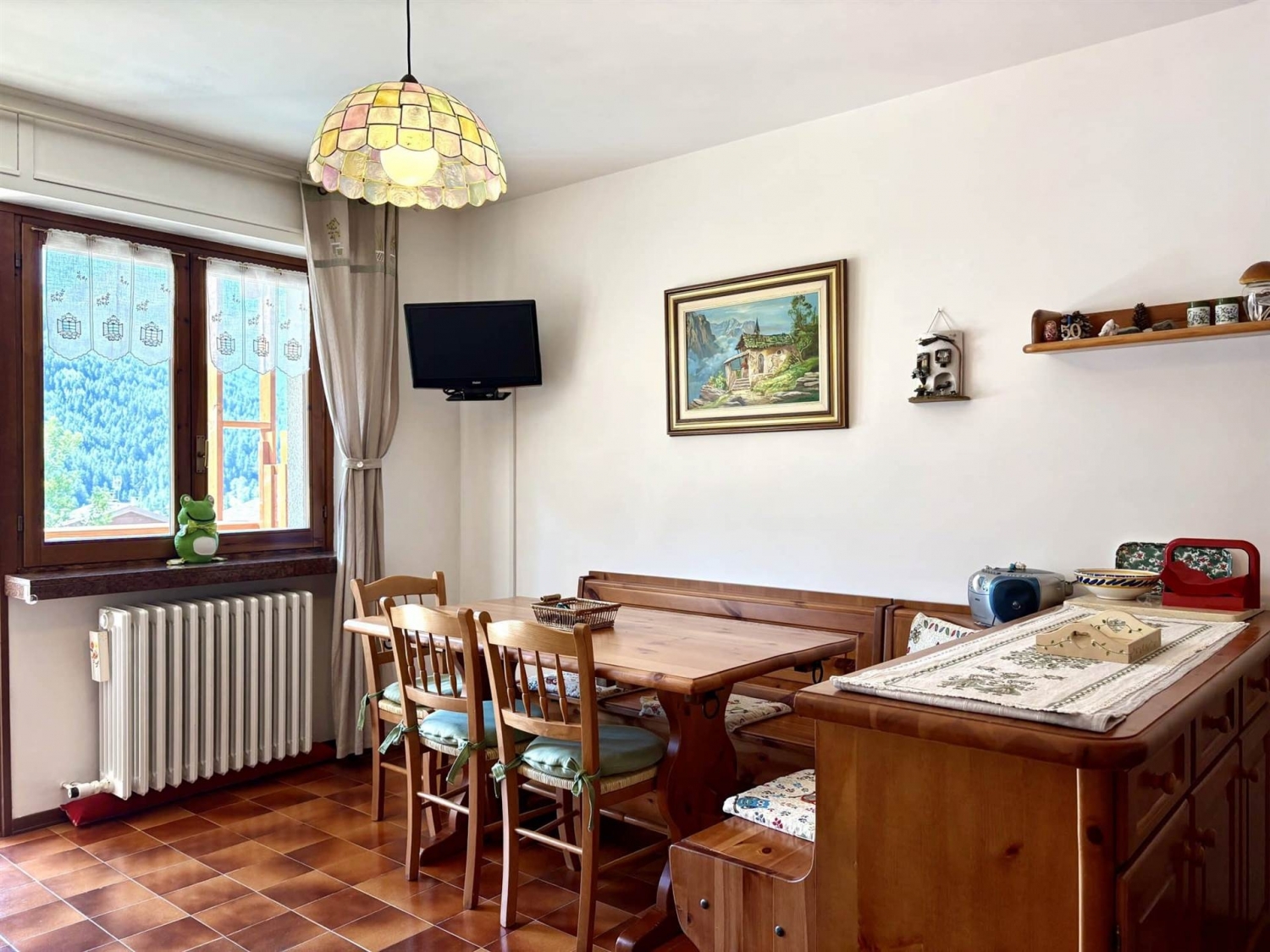 In posizione soleggiata e panoramica, a pochi minuti dal centro e dai principali servizi, proponiamo un accogliente bilocale arredato, perfetto come casa vacanza in ogni stagione.l'appartamento si trova al primo piano di un condominiocurato, circondato da ampi spazi verdi condominiali. L'ingresso conduce ala luminosa zona giorno con cucina legno su misura e area pranzo, completata di un comodo divano letto ed accesso diretto al terrazzino coperto, ideale perpranzi all'aperto e momenti di relax con vista sulle montagne.la zona notte è composta da uno spazio accogliente con capientearmadio e letto a castello, mentre il bagno è dotato di doccia, lavabo con specchiera escaldasalviette, boiler elettrico per la produzione di acqua calda sanitaria.i radiatori sono serviti da teleriscaldamento, disponibile tutto l'anno, con gestione autonoma tramitetermostato, i fuochi della cucina sono alimentati da bombola a gas esterna, garantendo comfort in ogni periodo dell'anno. Completa la proprietà un comodo box auto in autorimessa sottostante la palazzina.tra l'innevata stagione invernale e le estati immerse nel verde, questa posizione permette di passare con naturalezza dalle piste da sci ai sentieri panoramici.per info e appuntamenti, chiamare il numero (l'ufficio di pragelato è aperto 7 giorni su 7) oppure il numero , dalle 09:30 alle 12:30 e dalle 14:30 alle 18:30. Classe energetica: non indicata
