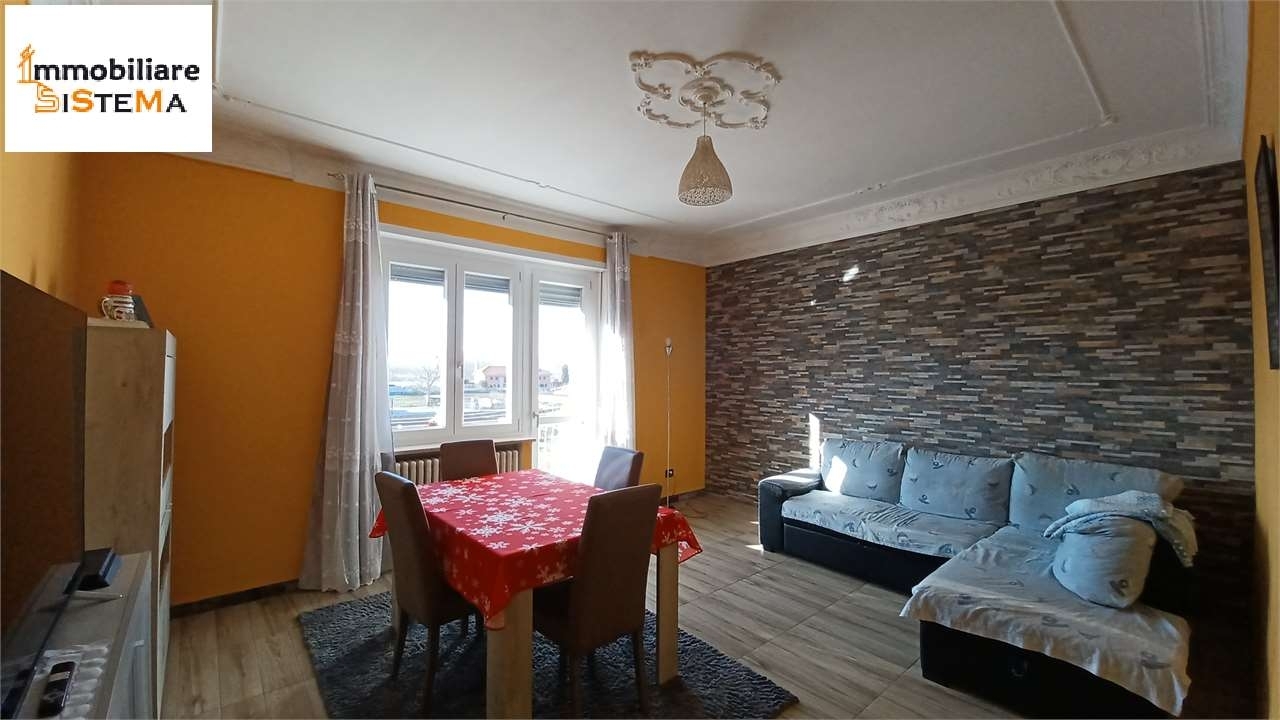 Proponiamo in vendita nel centro di santena appartamento con tripla esposizione in casa quadrifamiliare.l'abitazione ha una superficie catastale di 117 mq e si compone d'ingresso, cucina abitabile, salone con balcone esposto a sud dal quale si ha un'ottima vista sulle montagne e sulla collina del torinese. sono inoltre presenti due grandi camere da letto entrambe dotate di porte finestre dalle quali si accede all'ampio balcone. l'appartamento si completa con un ripostiglio e un bagno finestrato dotato di doccia e vasca.al piano terra troviamo infine due locali ad uso cantina e un box auto di 15 mq collegati tra loro. la soluzione descritta è ubicata in ottima posizione centrale comoda a tutti i servizi, scuole ed attività commerciali.riscaldamento autonomo, alimentato a metano.le condizioni sono ottime, l'abitazione è immediatamente abitabile, senza necessità di ulteriori interventi.si precisa che sono stati ultimati i lavori di efficientamento energetico che hanno riguardato il posizionamento del cappotto esterno, la sostituzione degli infissi, con installazione di caldaie a condensazione.classe energetica: 58,12 kwh/m2 a