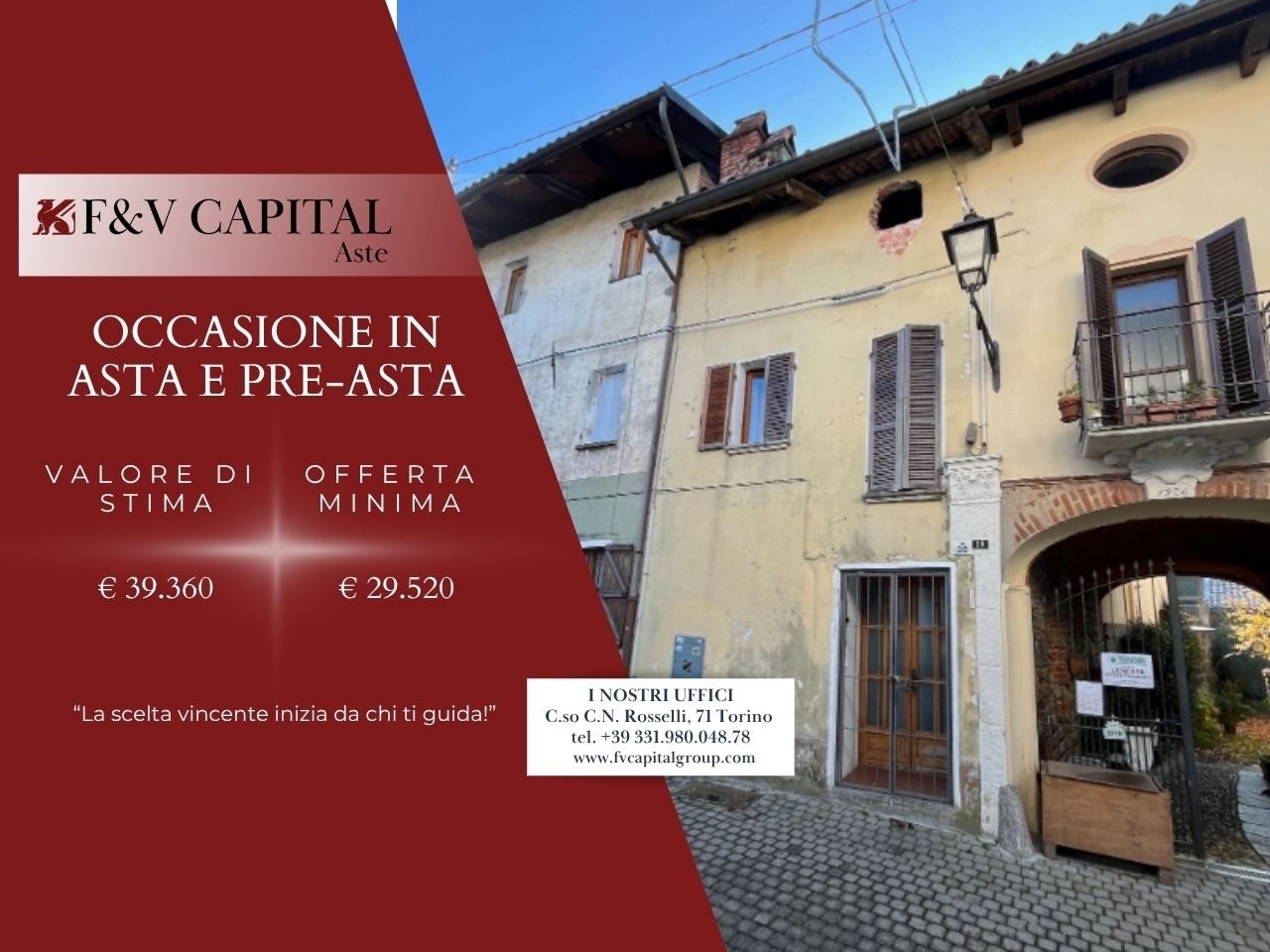 Lotto unico.nbene n. 1 - fabbricato civile ubicato a torre canavese (to) - via san grato n. 28, piano t-1nfabbricato civile a due piani fuori terra oltre sottotetto non accessibile, con accesso da via san grato n.c. 28, composto da: soggiorno, vano scale, cucina e corte esterna al piano terreno; due camere, disimpegno, bagno e balcone al piano primo.nidentificato al catasto fabbricati - fg. 24, part. 816, cat. A/4.nbene n. 2 - terreno ubicato a torre canavese (to) - via san grato.ncorte attigua unita al fabbricato in mappa al n. 816 (bene n. 1).nidentificato al catasto terreni - fg. 24, part. 735, qualità rel acc. Com.nnasta capital and #8211; lo studio che ti guida con sicurezza nel mondo delle aste immobiliariaffidarsi ad asta capital significa avere al proprio fianco non una semplice agenzia, ma un vero e proprio studio legale immobiliare, specializzato in aste giudiziarie.a differenza delle classiche agenzie, il nostro team and #232; composto da avvocati esperti, professionisti del settore immobiliare e consulenti finanziari che ti seguono passo dopo passo. Ogni immobile viene analizzato a fondo: verifichiamo la documentazione legale, studiamo la perizia per evitare sorprese e prepariamo business plan personalizzati per chi cerca un and #8217;opportunit and #224; di investimento.dove possibile, esploriamo strade alternative all and #8217;asta, come il saldo e stralcio, che permette and #8211; in determinati casi and #8211; di ottenere l and #8217;immobile prima che vada all and #8217;asta, con condizioni potenzialmente ancora pi and #249; vantaggiose.con noi non sei mai solo: offriamo assistenza dedicata 24 ore su 24, sempre pronti a rispondere ai tuoi dubbi e guidarti con trasparenza.siamo anche orgogliosi del nostro dipartimento eticapital, dedicato a sostenere le famiglie in difficolt and #224; economica, aiutandole a salvare la propria casa prima che venga pignorata o messa all and #8217;asta.infine, grazie alla preparazione del nostro team, collaboriamo anche con istituti di credito per accedere a npl (crediti deteriorati con sottostante immobiliare), offrendo cos and #236; opportunit and #224; uniche anche a investitori e operatori del settore.con asta capital, ogni asta and #232; un percorso sicuro, chiaro ed etico.contattaci per una consulenza gratuita e senza impegno. Siamo qui per accompagnarti con seriet and #224;, competenza e umanit and #224;.