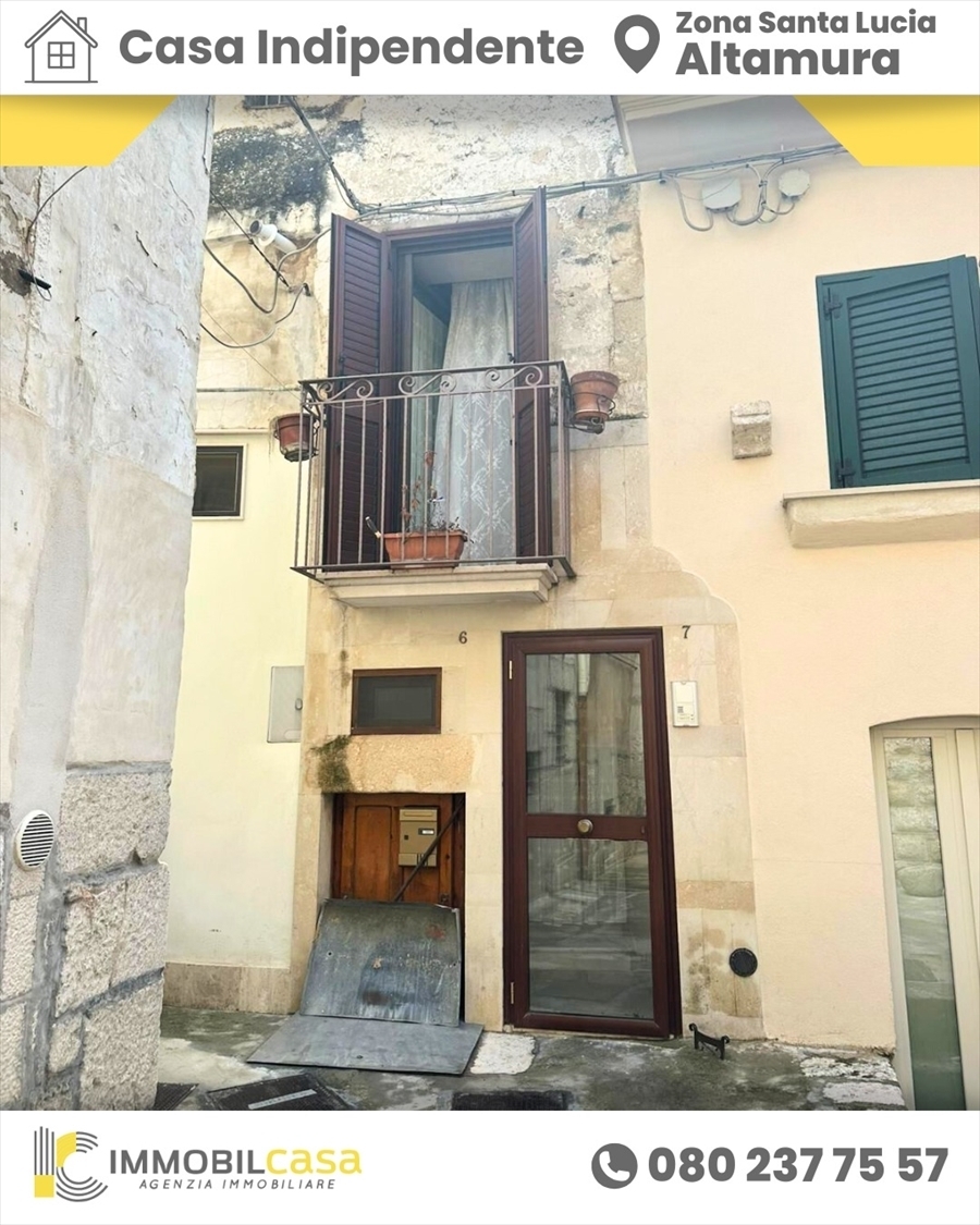 Rif 2.nella zona della chiesa di santa lucia, nel centro storico di altamura, proponiamo la vendita di una soluzione indipendente su più livelli per un tottale di 120 mq.la soluzione si divide in:- piano seminterrato con un proprio ingresso di 50 mq composto da 2 vani e bagno.- piano terra di 50 mq, con ingresso in zona giorno con bagno; si accede alla zona notte tramite degli scalini ed è composta da due stanza di cui una con balcone.- mansarda (deposito) di circa 20 mq composta da una sola stanza e bagno, a cui si accede attraverso delle scale dal piano terra.da ristrutturare c'è solo il piano seminterrato, il resto dell'appartamento è in buone condizioni e quindi abitabile.