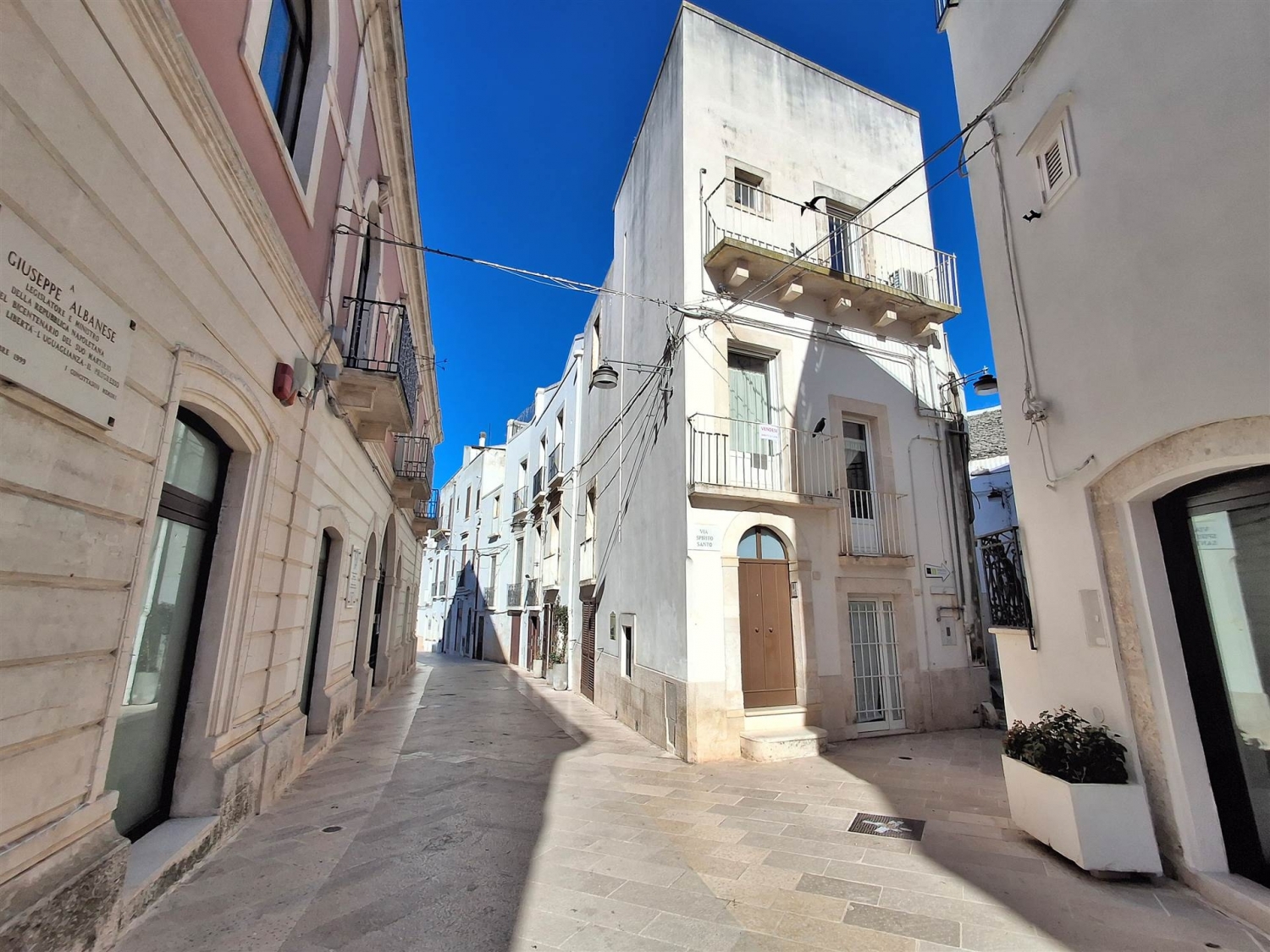Prestigiosa dimora indipendente terra-cielo, sulla via principale del centro storico, proprio di fronte al vecchio municipio, comprendente: luminosa ed accogliente zona abitativa di 120 mq tra primo e secono piano, composta in totale da sette vani più servizi ed annessi locali di 50 mq al piano terra (da adibire a studio/area relax/tavernetta), con ingressi indipendenti e comunicanti con l'abitazione. completa lo stabile, un terrazzo con vista panoramica sui tetti ed i campanili del borgo antico.la proprietà si distingue per uno stile che racchiude fascino ed atmosfera accogliente.caratterizzata da tipiche volte a botte, camino nella cucina al primo piano, è inoltre fornita di riscaldamento autonomo con termoarredi, condizionatore d'aria in alcuni ambienti, pavimentazione tra parquet, cotto e gres porcellanato effetto parquet. classe energetica: g
