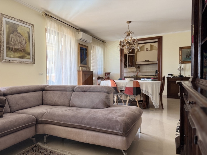 In via benedetto croce (zona via corato), proponiamo in vendita un elegante appartamento di 125 mq. Posto al 4° piano di un complesso residenziale dotato di ascensore. L'abitazione si distingue per la sua luminosità e per la funzionale distribuzione degli spazi, ed è cosù composto: ingresso su ampia zona living con caminetto a vista, accogliente e ben organizzata, ampio cucinino separato con vano lavanderia integrato e grande balcone angolare ideale per momenti di relax; disimpegno che conduce alla zona notte dove troviamo una camera matrimoniale completa di cabina armadio e bagno privato, con affaccio su balcone posteriore, luminosa cameretta e ampio bagno padronale. A completare la proprietà, un box auto di 20 mq. Al piano interrato, facilmente accessibile direttamente dallo stabile grazie all'ascensore e alle scale interne. Posizione tranquilla e servita, vicina a scuole, negozi e principali vie di collegamento.