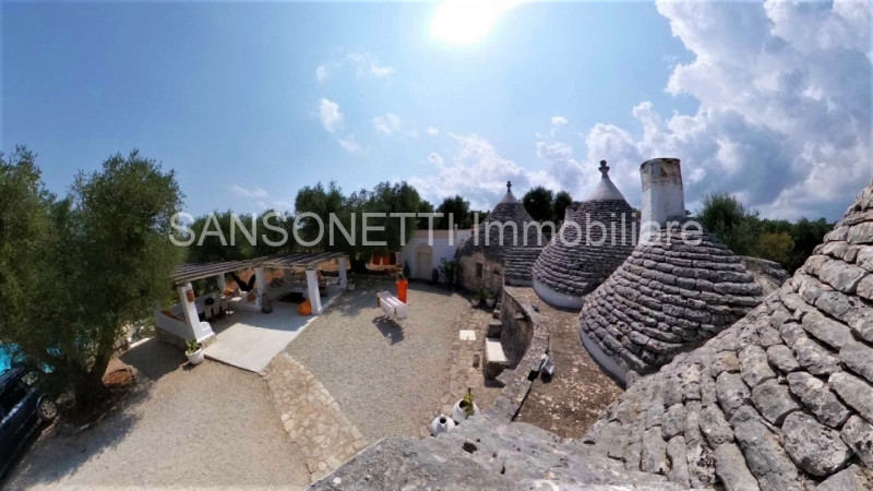 Rif. Roger - equidistante da ostuni, ceglie messapica, martina franca e cisternino in zona amena, sansonetti immobiliare propone in vendita complesso di trulli ristrutturati composti da 4 camere da letto sala ampio disimpegno ingresso cucina e 3 bagni nel corpo principale e una depandance con camera da letto servita da bagno, completa la proprietà un ampio cortile con piscina e terreno di mq 15.000 circa con ulivi e macchia mediterranea.alta redditività da locazione turistica la localizzazione dell'immobile è approssimata a 1000 metri circa in linea d'aria da quella indicata in mappa, per questioni di privacy non forniremo la reale posizione.