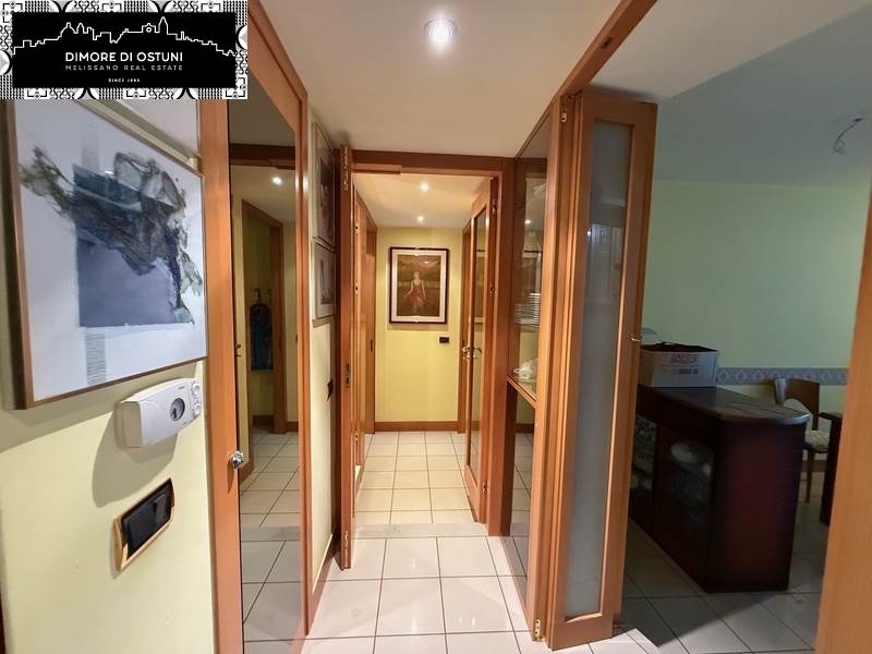 L'agenzia immobiliare dimore di ostuni - melissano real estate ha il piacere di proporre in vendita un raffinato appartamento trilocale di 132 mq, situato al secondo piano di un elegante contesto residenziale recentemente ristrutturato e servito da ascensore.varcando la porta blindata, un elegante disimpegno d'ingresso introduce alla zona giorno, ampia e luminosa, composta da soggiorno con caminetto, angolo studio e una comoda cucina abitabile con zona pranzo e cucinotto separato.il bagno principale, dotato di doccia, è funzionale e moderno.la zona notte si compone di due spaziose camere matrimoniali, una delle quali servita da balcone, cabina armadio e bagno privato 'en-suite'.un utile ripostiglio completa la proprietà.tra le dotazioni troviamo: riscaldamento autonomo a gas metano, impianto di aria condizionata, tapparelle elettriche, porta blindata.l'immobile si distingue per la luminosità, le ampie metrature e la posizione centralissima, a pochi passi da tutti i principali servizi: supermercato, scuole, farmacia e attività commerciali raggiungibili comodamente a piedi.ci trovate su facebook e instagram con: dimore di ostuni - melissano real estateclicca mi piace per restare aggiornato sulle nostre proposte immobiliari!_________________________________________________________________________________________english:dimore di ostuni - melissano real estate real estate agency is pleased to offer for sale a refined three-room apartment of 132 m2, located on the second floor of an elegant residential context recently renovated and served by a lift.crossing the armored door, an elegant entrance hallway leads to the large and bright living area, consisting of a living room with fireplace, study corner and a comfortable eat-in kitchen with dining area and separate kitchenette.the main bathroom, equipped with a shower, is functional and modern.the sleeping area consists of two spacious double bedrooms, one of which has a balcony, walk-in closet and private 'en-suite' bathroom.a useful storage room completes the property.among the equipment we find: independent methane gas heating, air conditioning system, electric shutters, armored door.the property stands out for its brightness, large sizes and very central location, a few steps from all the main services: supermarket, schools, pharmacy and commercial activities easily reachable on foot.you can find us on facebook and instagram with: dimore di ostuni - melissano real estateclick like to stay updated on our real estate proposals! classe energetica: g epi: 3145,63 kwh/m2 anno