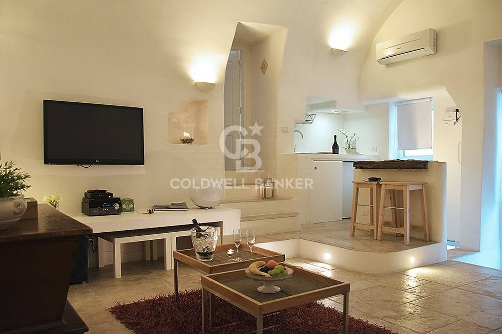 nella caratteristica cittadina di ostuni, meglio nota come la 'città bianca', perla della puglia e meta turistica che attira visitatori da ogni luogo , coldwell banker ha il piacere di proporre in vendita una antica casa del 1900 interamente ristrutturata posta al piano rialzato e composta da un ingresso salottino con angolo cottura a vista e piccolo servizio. attraverso pochi gradini si raggiunge una accogliente e comoda camera matrimoniale con bagno privato ed un piccolo vano attiguo con funzione di stanza armadio. Entrambi gli ambienti sono impreziositi da bellissime volte a stella, ma la vera perla della casa è una grande vasca circolare di 9 mq ed incastonata sotto una volta a botte al piano seminterrato emersa durante i lavori di ristrutturazione ed utilizzata come piccola piscina con idromassaggio, cromoterapia, cascata ad acqua per massaggio cervicale. all'esterno dell'edificio è presente un piccolo vano tecnico dove sono posti gli impianti per la piscina ed il robot per la sua manutenzione e pulizia. l'appartamento è attualmente adibito a casa vacanze con capienza massima di 4 persone e regolare autorizzazione della regione puglia. la sua particolarità la colloca nei primissimi posti sui maggiori siti e portali dedicati alle locazioni turistiche grazie all'attività intrapresa con successo dai proprietari e verificabili attraverso le recensioni sugli stessi portali e sul guest book degli ospiti. L'immobile, si cede con la relativa cessione di ramo di azienda, quindi totalmente arredato e fornito di tutte le attrezzature ed impianti quali domotica, impianto di osmosi per depurazioni acque, due tv, tre climatizzatori, impianto di video sorveglianza, rilevatore di gas, di monossido di carbonio, impianto stereo a filo diffusione, piano cottura ad induzione, cassaforte. Si correda inoltre di biancheria da letto 4 stagioni e da bagno quali accappatoi, spugne, ecc. Incluso, inoltre, un pacchetto clienti, sito web già avviato ed eventuale prima assistenza ove richiesta, profili social e profili booking. La sua posizione privilegiata , a qualche centinaio di metri dalla piazza, raggiungibile a piedi e al contempo preservata dai rumori del centro, la rende particolarmente interessante e fruibile in tutte le stagioni , sia che si voglia partecipare alla movida estiva, sia che si voglia godere in tranquillità per occasioni speciali. Recensioni, calendario accoglienza/disponibilità verificabili , ne fanno un investimento di sicuro successo