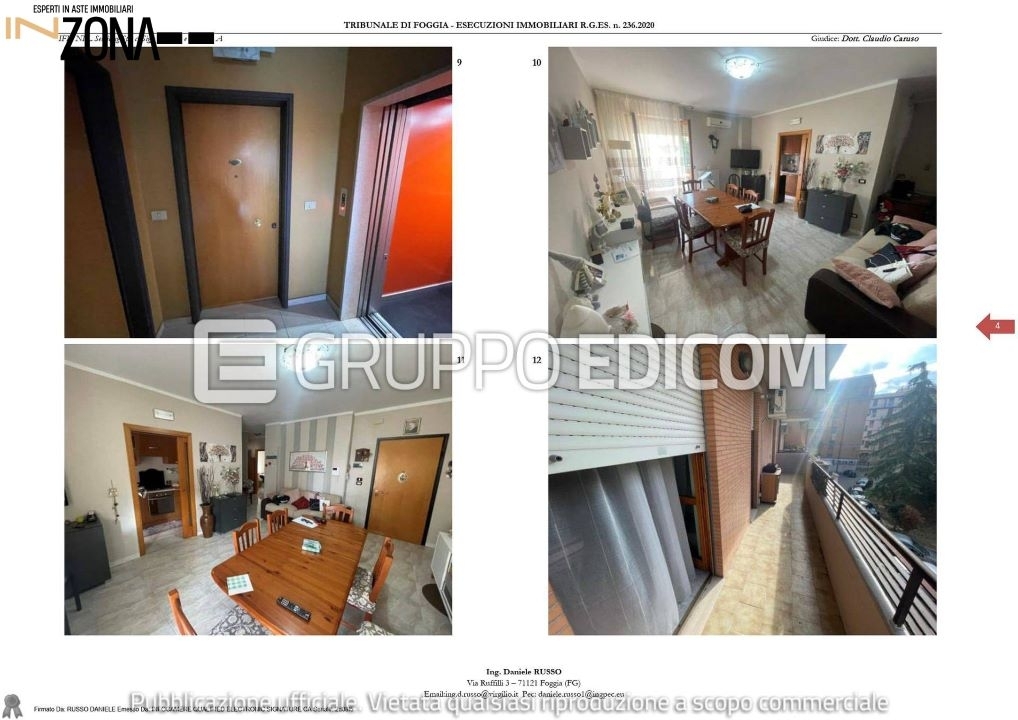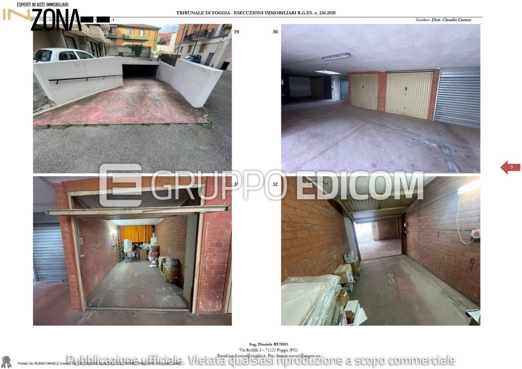Asta ---- prezzo and euro; 67.125,00 --- risparmio and euro;22.000nbene n. 1nappartamento al secondo piano e si compone di soggiorno-pranzo, cucinino, bagno, due camere da letto, un ripostiglio cieco e un balcone. Ngli infissi sono in legno con doppio vetro, mentre le porte interne sono in legno tamburato color rovere. Presenti impianti idrico-sanitario, fognante, elettrico, gas e di riscaldamento. L'unità abitativa si trova in buone condizioni di manutenzione interna, con adeguata esposizione, areazione e illuminazione. Superficie commerciale mq 98.nnbene n. 2ngarage situato al piano interrato ed è accessibile tramite ascensore o mediante una rampa che parte dal cortile condominiale. Il box auto identificato dall'interno n. 12 è collocato sulla sinistra della rampa d'accesso. Ndispone di una serranda basculante metallica e al suo interno presenta pavimentazione in cemento industriale e pareti intonacate. Superficie commerciale: 19,00 mqnndata venditan :00nnprezzo basen and euro; 89.500,00nofferta miniman and euro; 67.125,00nnti piacerebbe comprare una casa all'asta ma non sai come fare perché non sei un esperto?nncontattaci per avere maggiori informazioni su questo immobile e su come poterlo acquistare in totale sicurezza.nninzona offre un servizio di assistenza tecnico - legale per l'acquisto di immobili in asta attraverso queste attività:nnprima consulenza: appuntamento presso la nostra sede di foggia, presso il centro direzionale e9 in via donato de leonardis, foggia (fg), per offrire chiarimenti sulle aste ed ascoltare le tue esigenze immobiliari.n- mediazione creditizian- studio fattibilità per la partecipazione in asta con mutuo fino al 100%n- studio della perizia e della documentazione dell'immobilen- accertamenti catastali per eventuali abusi edilizin- accompagnamento visita immobilen- disbrigo pratiche per la partecipazione all'asta (anche solo compilazione della domanda)n- rappresentanza legale il giorno della venditan- rilascio del decreto di trasferimento in tempi brevin- assistenza per il saldo prezzon- compilazione f24 per tassen- disbrigo pratiche per eventuale sanatorian- assistenza alla consegna immobilenncontattaci per avere maggiori informazioni sull'immobile e su come partecipare all'asta.nnnn