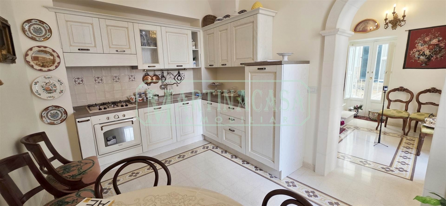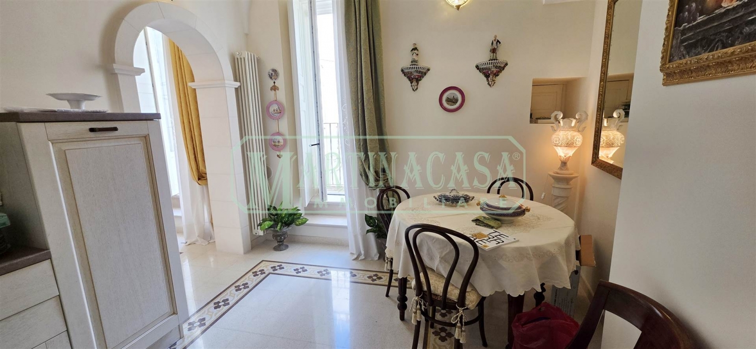 Nel cuore del centro storico di martina franca, in via pietro colletta, tra la basilica di san martino e l'ex convento seicentesco delle monache agostiniane, proponiamo in vendita una luminosa residenza di pregio su tre livelli, con scale rivestite in pietra di trani, dotata di agibilità.il primo piano accoglie un soggiorno con cucina a vista arredata (inclusa nella vendita) e una balconata con affaccio sul largo colletta.il secondo piano ospita una camera matrimoniale e un bagno finestrato con doccia; il terzo ed ultimo piano è composto da un unico vano a cummerse con accesso diretto a un terrazzino panoramico con affascinante vista sul campanile della basilica. Completa la proprietà un monolocale al piano terra con volta in pietra a vista e pavimentazione in cementine.la ristrutturazione ha conservato le caratteristiche originarie dell'immobile, valorizzandone gli elementi storici e integrandoli armoniosamente con comfort moderni (infissi performanti, impianto di allarme e videosorveglianza).la posizione centrale e la vicinanza ai servizi rendono l'immobile ideale sia come abitazione principale sia come casa vacanza.visita il nostro sito (rif. 1100).per essere sempre aggiornato sui nostri immobili, la invitiamo a seguire la nostra pagina facebook (martinacasa) ed il nostro profilo instagram (agenzia_martinacasa). classe energetica: e