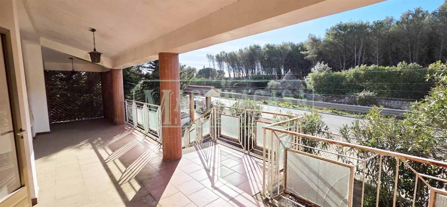 A 5 km da martina franca, sulla via per taranto, proponiamo in vendita una villa bifamiliare da ristrutturare. L'immobile si sviluppa su due livelli, ciascuno con un appartamento indipendente e non collegato internamente, ma con la possibilità di creare un collegamento interno per ottenere un'unica ampia abitazione. Il piano rialzato comprende: veranda di 64 mq (che abbraccia l'abitazione su tre lati), ingresso-soggiorno, due camere da letto, corridoio, ripostiglio, bagno e cucina con altro accesso in veranda. Il piano terra, quasi interamente circondato da un porticato di 90 mq, è composto da: cucina, bagno, soggiorno e due camere da letto. La proprietà dispone di due ingressi e di un ampio giardino alberato di circa 3500 mq. Una soluzione versatile, perfetta per due nuclei familiari o per chi desidera trasformarla in una residenza unica e personalizzata.visita il nostro sito (rif. 1093).per essere sempre aggiornato sui nostri immobili, la invitiamo a seguire la nostra pagina facebook (martinacasa) ed il nostro profilo instagram (agenzia_martinacasa). classe energetica: non indicata