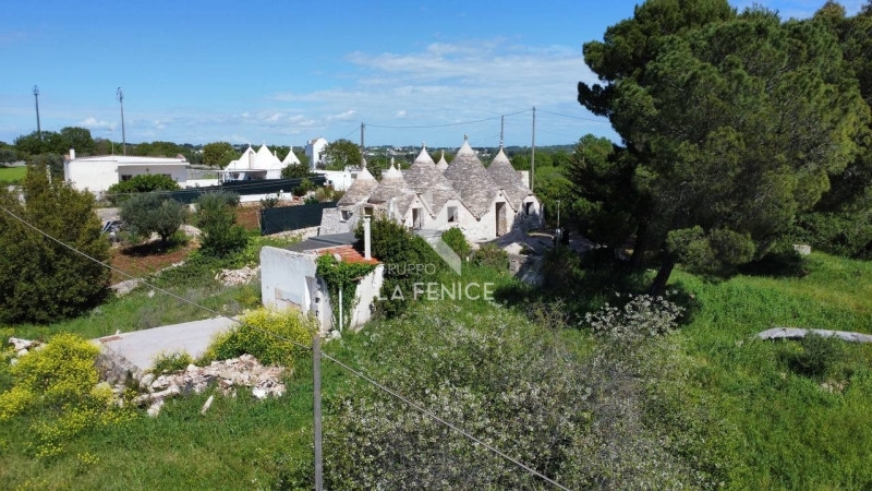 Via ostuni, nel cuore della suggestiva valle d'itria, a circa 3,5 km dal paese, proponiamo in vendita un affascinante complesso di 8 trulli con un ampio terreno pertinenziale di circa 1 ettaro, attualmente adibito a seminativo e frutteto.l'immobile è facilmente accessibile tramite due ingressi direttamente dalla strada, che conducono a un suggestivo piazzale ideale per godersi il paesaggio e momenti di relax immersi nella natura.esternamente e strutturalmente in ottime condizioni, l'interno necessita di ultimazioni e finiture.la posizione strategica e la metratura ampia rendono questa proprietà ideale sia come investimento che come seconda casa, perfetta per chi desidera vivere in un contesto autentico e tranquillo.completa la proprietà una caratteristica lamia di piccole dimensioni, attualmente adibita a deposito, che aggiunge potenzialità e funzionalità all'intera soluzione.la casa gode di una cisterna, pozzo nero e luce.