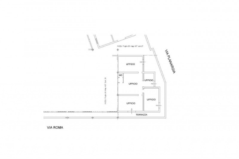 Vendesi ufficio al primo piano di un fabbricato di maggiore consistenza con destinazione mista commerciale/direzionale/residenziale nella zona semicentrale del comune di olbia (ss) con accesso da via roma.internamente l'ufficio si compone da un nucleo principale dotato di servizio igienico e da una porzione realizzata successivamente in ampliamento rispetto alla principale sempre ad uso ufficio.impiantistica autonoma con la predisposizione per l'installazione di riscaldamento/raffrescamento con split.completa la proprietà un' ampia area cortilizia comune e una scala esterna che porta direttamente al piano primo passando per il suddetto cortile.superficie catastale: 133 mqpiena proprietà:a/10 (cf): foglio 36 particella 437 subalterno 30il prezzo è da intendersi iva esclusa (tipicamente aliquota pari al 22%). La proprietà si rende disponibile all'applicazione del reverse charge iva.
