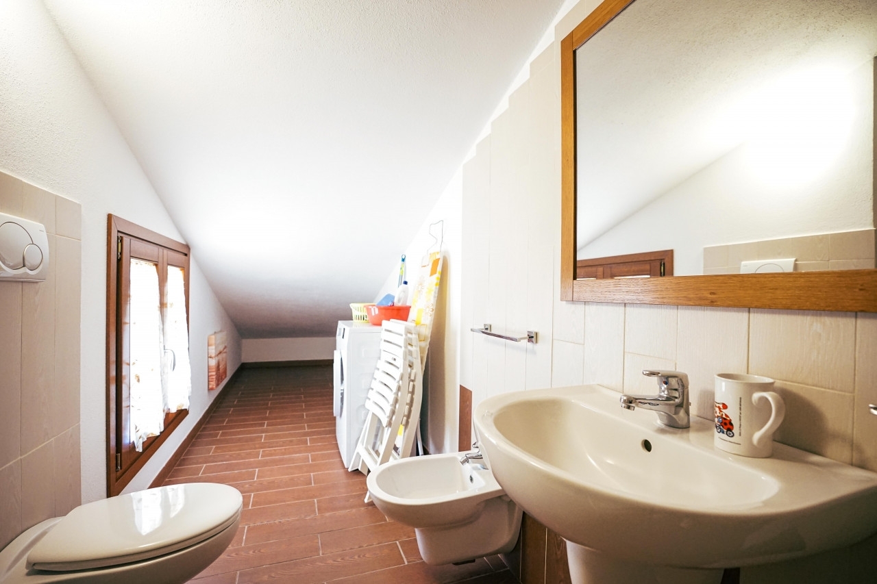Due grandi locali con il tetto spiovente sono stati attrezzati come posti letto potendone garantire comodamente 4 mentre il bagno finestrato con grande doccia completa il piano.