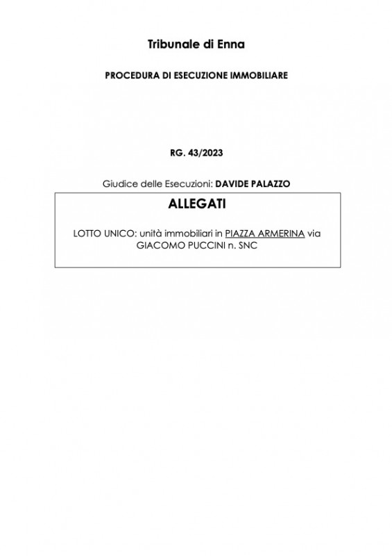 Appartamento all'asta a piazza armerina (en)immobiliallasta.it, società di consulenza leader per la partecipazione in asta, propone la possibilità di partecipare all'asta di un appartamento situato in una rinomata piazza della provincia di enna. L'asta per questa interessante proprietà si terrà presso il tribunale di enna. L'immobile richiede un'offerta minima di 83751 €. L'appartamento, ubicato a piazza armerina, in via giacomo puccini snc, è classificato come categoria a3, corrispondente a un'abitazione di tipo economico. I dati catastali indicano la sua posizione nel foglio 179, particella 1549, subalterno 6, con una rendita di euro 362,55. La zona censuaria è la numero 1, la categoria è a/3b, la classe è 3 e la consistenza è di 6 vani. La superficie totale dell'appartamento è di 148 m2, escludendo le aree scoperte di 128 m2. Inoltre, è presente un'autorimessa/garage con dati catastali c/6, foglio 179, particella 1549, subalterno 13. Per maggiori informazioni non esitare a contattarci utilizzando i nostri recapiti.chi siamoimmobiliallasta.it aiuta le persone a comprare casa all'asta e migliorare la qualità della loro vita senza correre rischi, grazie ad una piattaforma specializzata in aste immobiliari sviluppata intorno alle vere esigenze di chi cerca casa all'asta e ad un team di 30 professionisti esperti dedicato, che ti guida passo passo in un acquisto sicuro e certificato da una tripla garanzia sull'immobile e sul servizio.a differenza delle agenzie troverai:+ varietà: gestiamo migliaia di immobili ogni mese+ tranquillità: tripla garanzia che ti tutela da ogni rischio sull'acquistoalcuni risultati oggettivi nell'ultimo anno e mezzo:- 8.600 immobili gestiti- +500 clienti portati all'asta- +200 case aggiudicate, per un valore totale di 15 milionicontattaci subito per parlare con uno dei nostri consulenti che ti aiuterà a trovare la tua casa all'asta senza correre rischi.