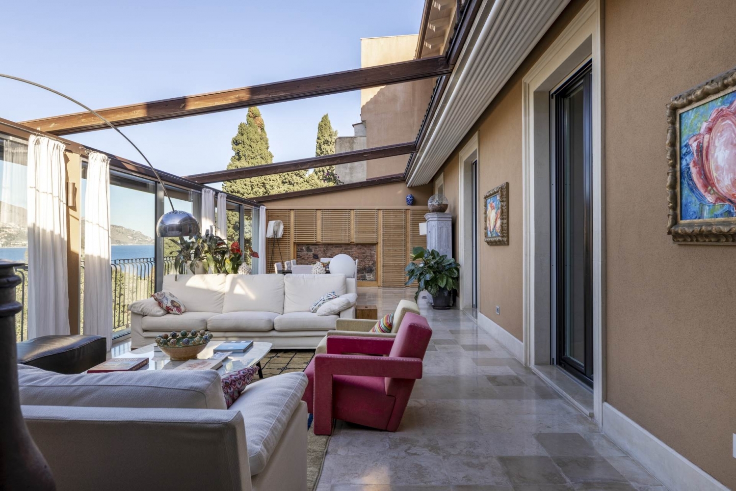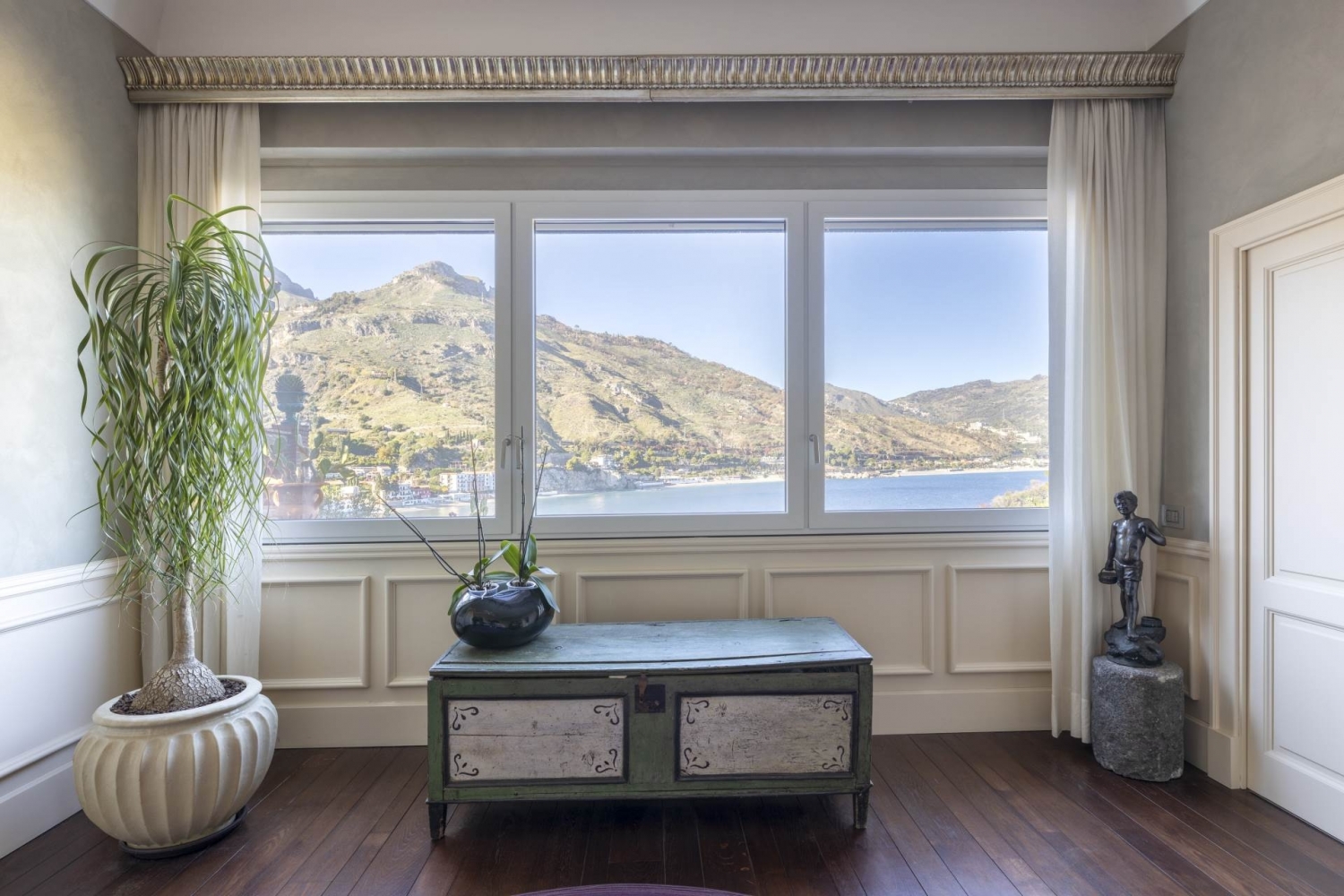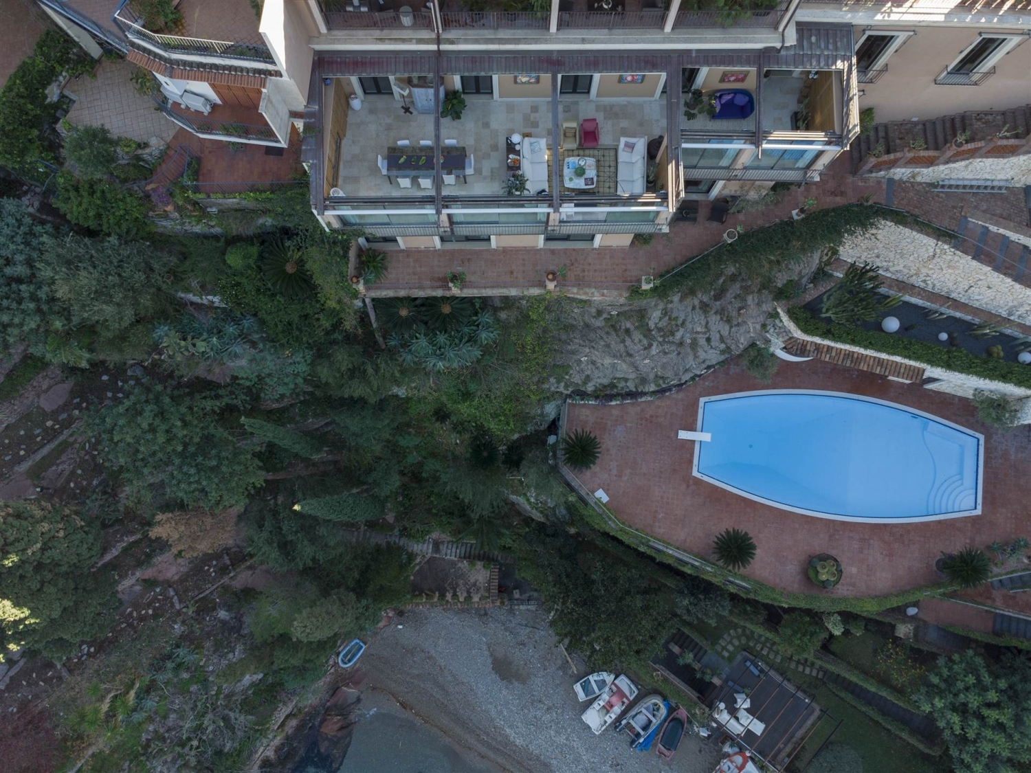 A taormina luogo simbolo del turismo in sicilia, si trova questa splendida villa di lusso in vendita, in posizione esclusiva e panoramica a picco sul mare. costruita sul monte tauro, direttamente sulla baia di s. Nicola, la più bella e riservata di taormina, che fu anche il primo approdo romano, si erge villa margherita, una favolosa proprietà immersa nel verde della vegetazione e nel blu intenso del mare. la villa fu costruita a metà dell'800 , e successivamente nel '900 di proprietà dell'amministratore generale della ducea di bronte, colui che da questa villa amministrava le proprietà dell'ammiraglio nelson si tratta di una dimora storica resa ancor più affascinante e lussuosa dallo scrupoloso intervento di restauro dell'architetto bambara, con un cantiere durato tre anni, sotto la sorveglianza della soprintendenza dei beni culturali e ambientali di messina, sia per la parte paesaggistica che archeologica.il restauro della villa ha consentito di recuperare le parti storiche, dando nuova vita a questa dimora sul mare, con 1.000 mq di parco a terrazzamenti, piscina e parcheggio privato. La villa si sviluppa su tre livelli, tutti esposti sul mare con una vista a 360°.il livello principale si compone di un ingresso con grande vetrata panoramica che crea un continuum tra interni ed esterni.un corridoio conduce alla zona di rappresentanza, caratterizzata da un ampio living con zona pranzo, in continuità con un grande giardino d'inverno direttamente sul mare con grandi finestre scorrevoli e tetto di copertura apribile che rende magica l'atmosfera di questa villa. Da qui si accede alla splendida cucina realizzata da boffi. Questo livello è servito da un bagno di rappresentanza di grande impatto estetico.un'ampia scala in legno e ghisa realizzata su disegno conduce al livello superiore, caratterizzato da grandi vetrate che rendono l'intero piano molto luminoso. Questo piano è composto da studio, camera da letto con bagno, zona fitness ed ampio terrazzo a livello.la scala conduce a un ulteriore livello dedicato alla zona notte, composta da un'ampia camera padronale con angolo studio, cabina armadio, bagno con vasca, doccia e terrazzo fronte mare di grandi dimensioni. Allo stesso livello troviamo un ulteriore camera da letto con bagno en suite e spazi di servizio dedicati a stireria, lavanderia e ampi ripostigli. gli interni della villa hanno impianto radiante a pavimento, pavimento in listoni di quercia francese anticato, boiserie e porte interne bugnate di legno realizzate da abili artigiani locali.passeggiando nel parco esterno che discende verso il mare, incontriamo la piscina con grande terrazzamento attrezzato con zona bar, zona wellness e bagno con doccia a servizio della piscina. il percorso che porta verso la spiaggia ci conduce a due dépendance; la prima, un appartamento ricavato nella roccia, è caratterizzato da un living con cucina e due camere da letto con bagno, tutti affacciati sul mare; la seconda dépendance è totalmente indipendente, caratterizzata da una zona giorno e una camera da letto con terrazzino. Continuando la passeggiata nel parco verso il mare, si incontrano ulteriori terrazzamenti a verde con zone d'ombra e gazebo perfetti per godere al pieno degli spazi esterni e della suggestiva vista mare. Classe energetica: a2