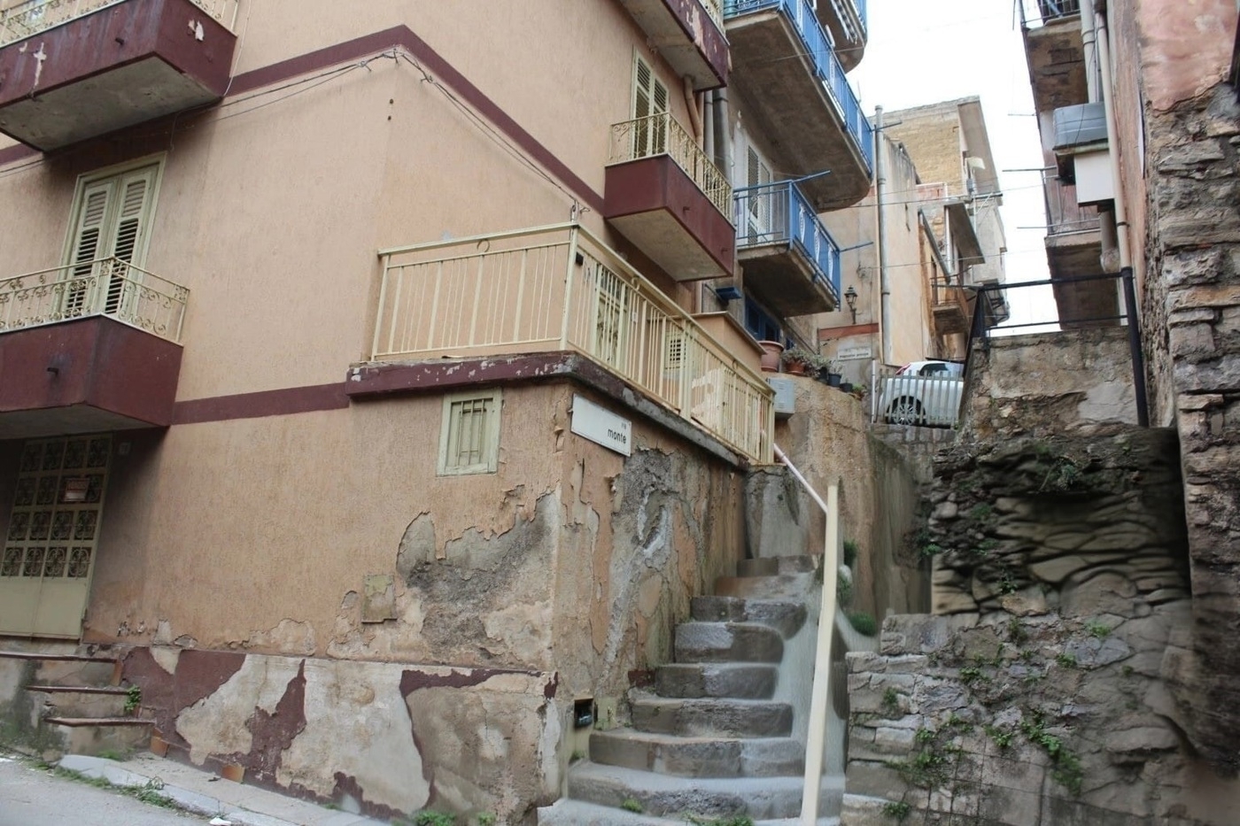 Belmonte mezzagno, nel cuore del centro storico, con accesso sia dalla via a. De gasperi che dalla via magazzino principe, piccola palazzina indipendente (cielo/terra) su tre livelli oltre magazzino di complessivi mq 70 comm.li.ingresso diretto su zona living con annesso cucinotto, tramite scala interna accesso sia al sottostante magazzino dotato di wc doccia che ai piani sovrastanti, piano primo con due camere, piano secondo con disimpegno wc doccia e terrazzino complanare. l'intera palazzina necessita di interventi di manutenzione.nella vendita sono inclusi dei terreni agricoli in agro di belmonte.