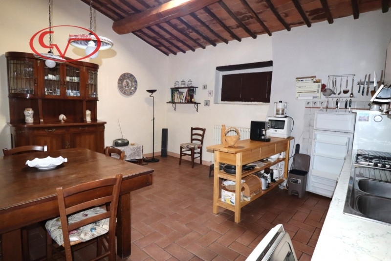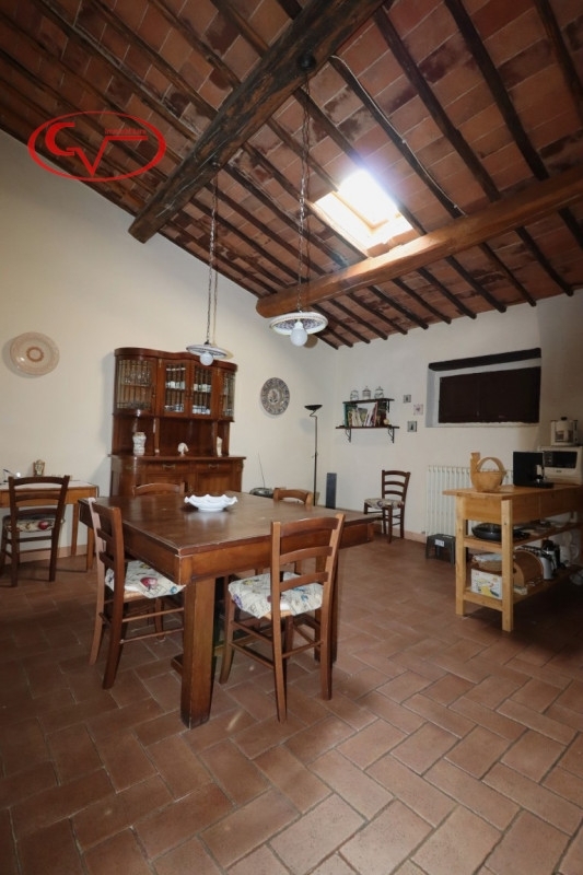 In un incantevole contesto paesaggistico e panoramico immerso nel verde, proponiamo in vendita una porzione di casa colonica adibita a civile abitazione a soli 10 minuti da montevarchi (amministrativamente sotto bucine). l'immobile ha una superficie commerciale (senza esterno ) di circa 220 mq ed è circondato da un ampio giardino esclusivo che offre privacy e spazio per attività all'aperto. La casa dispone di ingresso privato e si compone al piano primo di un luminoso soggiorno con soffitti alti e travi in legno a vista e camino ideale per momenti conviviali. La cucina è abitabile la zona notte ha 3 camere da letto spaziose che possono ospitare comodamente famiglie numerose o visitatori. Inoltre sono presenti due bagni completi.la proprietà include anche un fondo al piano terra utile come ripostiglio o cantina e diversi posti auto nell'ampio giardino circostante.il costo delle spese condominiali è contenuto, riscaldamento con gpl/pellet, approvvigionamento idrico con acqua di un pozzo condominiale. questa casa rappresenta l'opportunità ideale per chi cerca uno stile di vita sereno senza rinunciare alla vicinanza ai servizi principali. Non perdere questa occasione! contatta subito l'agenzia cv immobiliare per maggiori informazioni o per prenotare una visita.