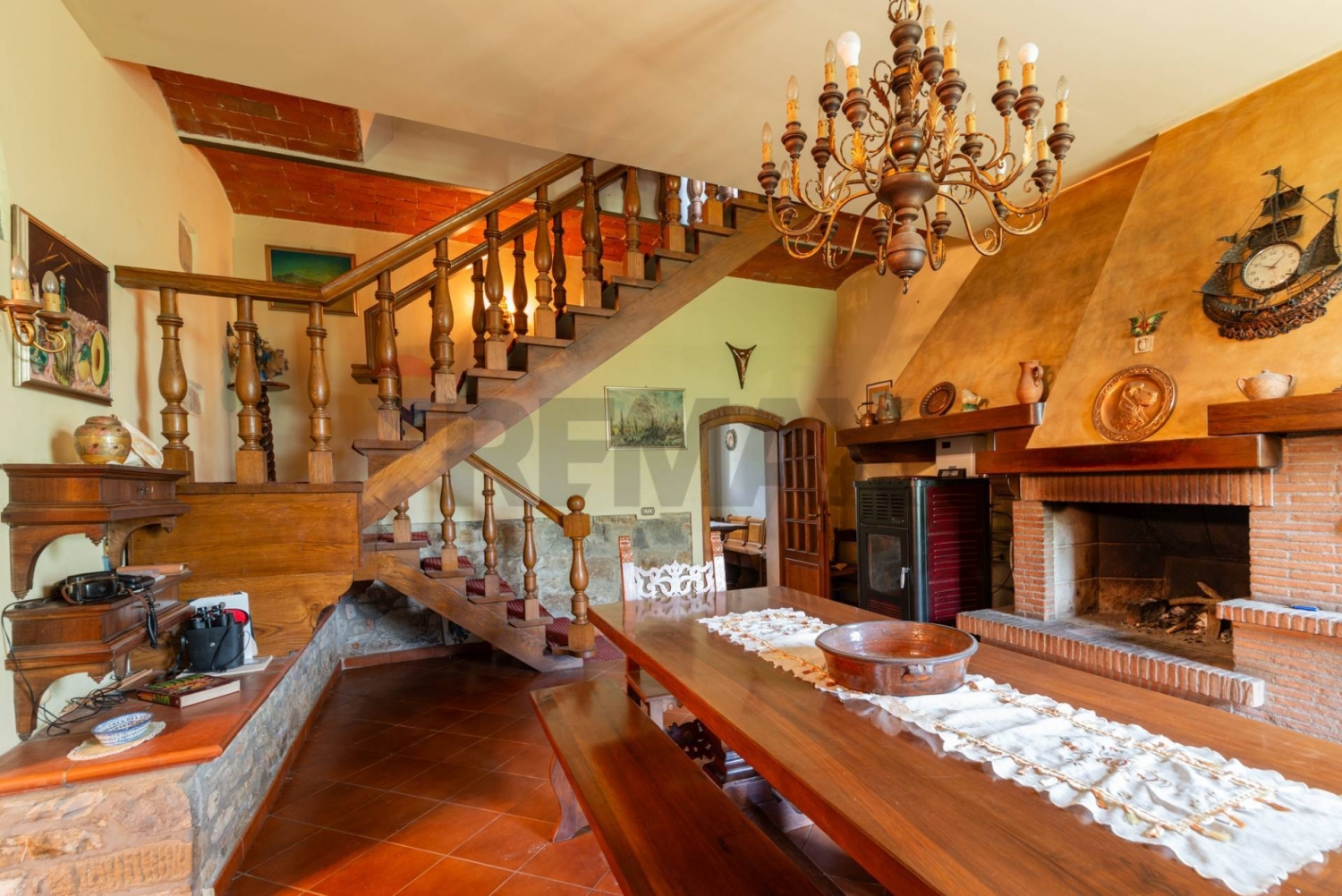 Remax proponela cascina/casale in vendita si trova in loc. Poggiano nelle immediate vicinanze di levane; si presenta come porzione di colonica, solida e spaziosa abitazione dalle caratteristiche tipiche della campagna toscana.la proprietà si sviluppa su due livelli, attualmente si presenta in un unico appartamento, facilmente divisibile in appartamento al piano terra e uno al piano superiore grazie al doppio ingresso, per una superficie totale di 242 metri quadrati, di cui 230 calpestabili.gli ambienti interni, per un totale di 10 locali, offrono ampi spazi ben definiti e ben distribuiti.si accede alla zona giorno mediante corte privata, che comprende una cucina abitabile, un ampissimo soggiorno munito di camino e caldaia a pellet che coadiuva o può sostituire il riscaldamento a gpl, un grazioso ed elegante salotto ed 1 bagno. E' inoltre presente una scala di noce massello per accedere al piano superiore, che porta alla zona notte cosù composta: 4 camere da letto matrimoniali, 1 bagno e un ampio salotto munito di camino, da cui si accede all'esterno mediante ingresso indipendente.l'abitazione è dotata di un efficiente impianto di riscaldamento a radiatori/pannelli radianti alimentato a pellet, che garantisce un comfort termico ottimale e un risparmio energetico significativo.lo stato di conservazione è buono e gli infissi/finestre in legno conferiscono un tocco rustico e accogliente all'ambiente.la proprietà dispone di un terreno circostante di circa 600 mq, ideale per coltivare un orto o godersi momenti di relax all'aperto.inoltre, è presente un box auto di 47 mq con doppie finestre e con altezza dei locali 2,70.il riscaldamento è autonomo e il combustibile utilizzato è il pellet, una soluzione ecologica e conveniente oltre al gpl.questo casale rappresenta l'opportunità ideale per chi desidera vivere in un ambiente tranquillo e immerso nella natura, senza rinunciare al comfort e alla praticità dei servizi e delle comodità che offre la zona di levane.gradita collaborazione con altre agenzie.