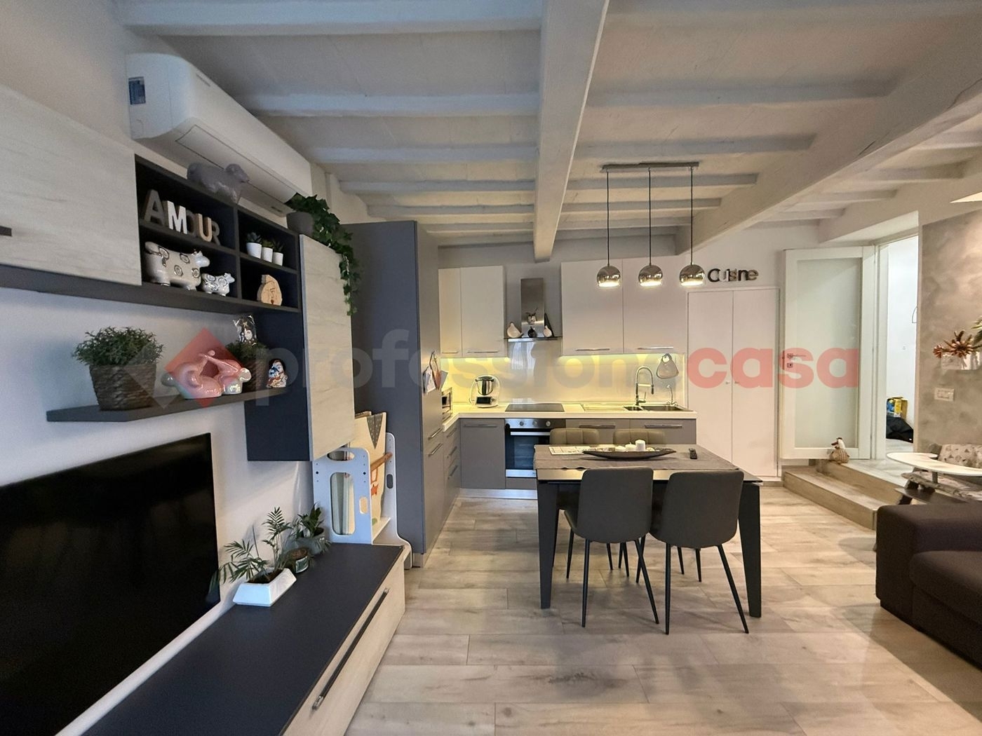 Professionecasa: in posizione tranquilla e immersa nel verde, proponiamo in vendita un delizioso appartamento trilocale di circa 78 mq, situato al secondo e ultimo piano di un caratteristico terratetto bifamiliare composto da sole due unità, senza spese condominiali. L?immobile, completamente ristrutturato nel 2018 con cura e attenzione ai dettagli, si compone di una luminosa zona giorno con soggiorno e angolo cottura, una spaziosa camera matrimoniale con bagno privato en suite, una comoda cameretta e un secondo bagno finestrato, completo di doccia. A completare la proprietà, una soffitta coibentata ideale come ripostiglio o zona multiuso. La casa è dotata di aria condizionata, infissi in legno con doppio vetro e caldaia nuova installata nel 2024, per un perfetto equilibrio tra comfort ed efficienza. Ideale per chi cerca una soluzione pronta da abitare, in un contesto riservato ma ben collegato. Rif. Vt129
