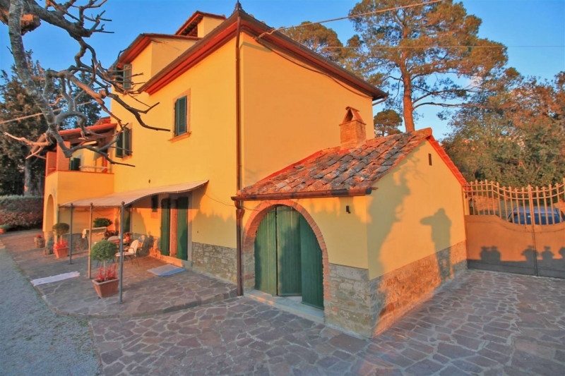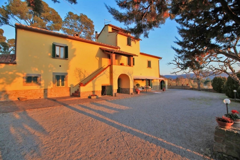 Sulla collina di cortona, proponiamo la vendita di casale risalente al '600 con bellissima vista panoramica sul lago trasimeno e sulla valdichiana, circondato da un giardino e piazzale di circa mq. 8000 con olivi e piante da frutto, possibilità di realizzare una piscina, interamente delimitati con doppio accesso. Il casale, recentemente recuperato, ha una superficie complessiva di mq. 300 suddivisa in due unità abitative indipendenti:appartamento al piano terreno di mq. 150 composto da porticato esterno con accesso diretto al soggiorno con caminetto, cucina abitabile, due camere, due bagni ed annesso un antico forno restaurato. Appartamento al piano primo di mq. 150 con accesso mediante scala esterna e loggiato che conducono ad un soggiorno con caminetto, cucina abitabile, due camere, due bagni e scala interna di collegamento all'antica torretta nella quale è stata ricavata una ulteriore camera. Entrambe le unità presentano le tipiche caratteristiche dello stile toscano come i pavimenti in cotto e i solai in travi di legno oltre a rifiniture di pregio come la pavimentazione in parquet della zona notte. Completa la proprietà una dependance di mq. 100, ristrutturata, composta da soggiorno con angolo cottura, camera, bagno e lavanderia/vano tecnico. Prezzo trattabile.