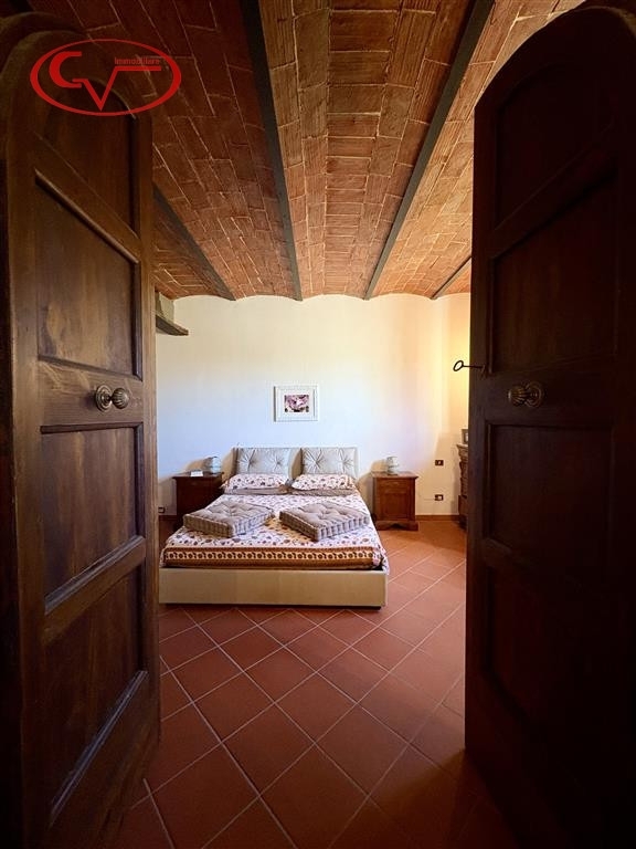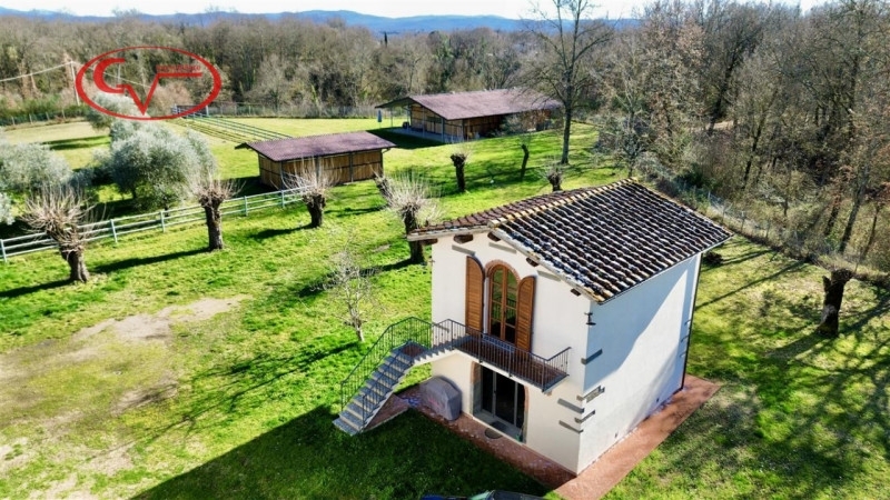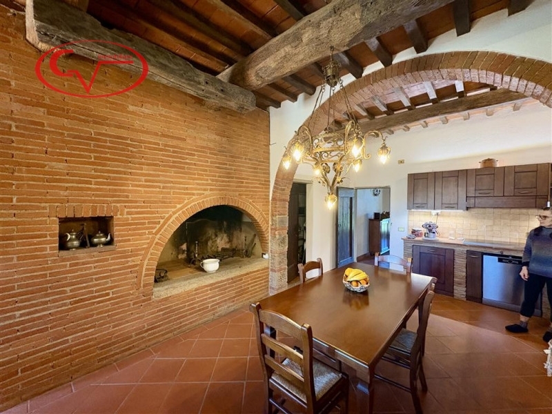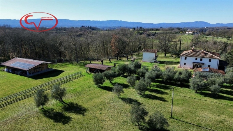 Affascinante proprietà composta da villa principale e dependance, situata in posizione tranquilla nella campagna, ma a breve distanza dai principali servizi e facilmente accessibile.la villa, di circa 400 mq distribuiti su due piani, accoglie al piano terra un'ampia e luminosa zona giorno con triplo salone e uscita diretta sul portico, cucina impreziosita da camino in pietra, sala da pranzo, palestra, bagno di cortesia e un'ulteriore stanza con soggiorno.al piano superiore è possibile ricavare una seconda unità abitativa indipendente, composta da soggiorno con camino e due balconi, cucina, tre camere da letto e due bagni.accanto all'abitazione principale si trova un ex fienile ristrutturato, disposto su due livelli, attualmente utilizzato come laboratorio per la lavorazione del miele e magazzino, oltre a un edificio separato adibito a lavanderia e locale tecnico. La proprietà include inoltre una tettoia per cavalli, una scuderia di circa 160 mq con quattro box e 17 ettari di terreno.l'intero complesso è stato oggetto di un accurato intervento di ristrutturazione nel 2010, durante il quale sono stati valorizzati i caratteri tipici dello stile rustico toscano, come pavimenti in cotto e travi in legno a vista, armoniosamente combinati con soluzioni moderne volte al risparmio energetico.la proprietà è completa di tutte le utenze e dotata di impianto fotovoltaico da 10 kwh con sistema di accumulo da 20 kwh, oltre a impianto solare termico per la produzione di acqua calda, che contribuiscono a garantire un'elevata autonomia energetica. In fase di ristrutturazione sono stati inoltre rifatti e coibentati il tetto. L'acqua è fornita da pozzo privato, mentre il riscaldamento è assicurato da caldaia a pellet autoalimentata con serbatoio che ha autonomia annuale. Presenti anche, sistema di allarme e cancello elettrico.