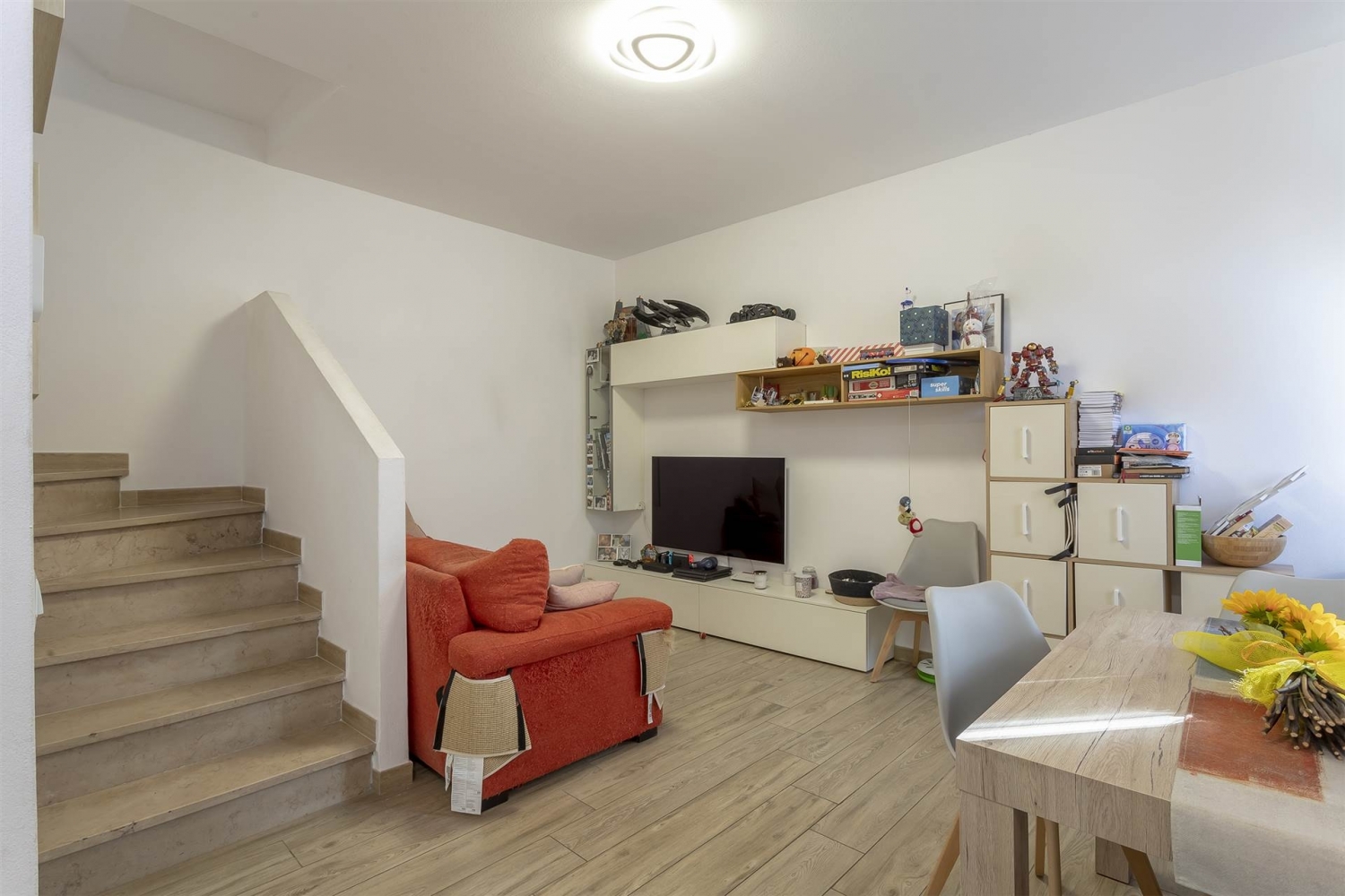 Calenzano, in posizione strategica, in quanto in prossimità dell'uscita autostradale e di tutti i principali servizi, si propone in vendita delizioso terratetto quadrivani, libero su due lati, di 86 mq catastali, oltre resede esclusivo, terrazza e garage. L'immobile, dotato di entrata indipendente da resede anteriore, è composto, al pian terreno, da ingresso su accogliente zona giorno open space, cucina abitabile con pratico ripostiglio/lavanderia e bagno di servizio. Al piano primo si sviluppa la zona notte, costituita da piccolo disimpegno, camera da letto matrimoniale collegata a terrazza, camera da letto singola e servizio finestrato con doccia. Completa la proprietà un comodo garage di 15 mq raggiungibile tramite il vialetto privato che fiancheggia l'immobile, a comune con le unità confinanti. L'oggetto, completamente ristrutturato in tempi recenti, si presenta in ottime condizioni ed è corredato di infissi in pvc con isolamento termoacustico e climatizzazione. Si presta idealmente per famiglie giovani, amanti dell'indipendenza e, al tempo stesso, della praticità garantita dal contesto urbano. Richiesti euro 335.000, libero in tempi tecnici, vendesi. Classe energetica: g