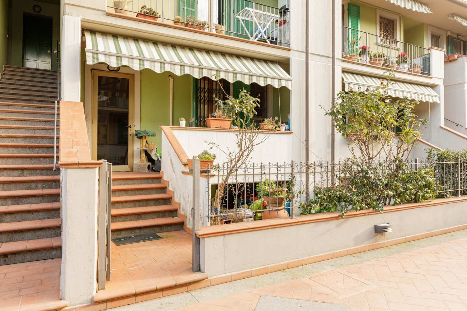 Nostra esclusiva. Campi bisenzio, località san piero a ponti, in contesto prettamente residenziale, tranquillo e riservato, nonchè circondato da verde pubblico, si propone in vendita appartamento trivani di 76mq catastali oltre giardino, terrazzo e cantina, posto al piano terra rialzato all'interno di un moderno e curato complesso di appartamenti a schiera. Si accede all'abitazione attraverso l'entrata indipendente dal suddetto giardino, uno spazio verde intimo e accogliente, ideale per momenti di relax all'aperto. Pochi gradini accompagnano al terrazzo, da cui si accede al soggiorno open space con angolo cottura, munito altresù di ripostiglio/dispensa. Il disimpegno conduce poi alla zona notte, composta da bagno finestrato con doccia e da due camere da letto, una singola e una matrimoniale, entrambe con accesso riservato ad un ulteriroe terrazzo tergale. Completa la proprietà una cantina di 6mq al piano seminterrato del fabbricato. L'abitazione è dotata altresù di portone blindato, inferriate anti-intrusione, doppie finestre e aria condizionata. Soluzione curata, funzionale e pronta da vivere.