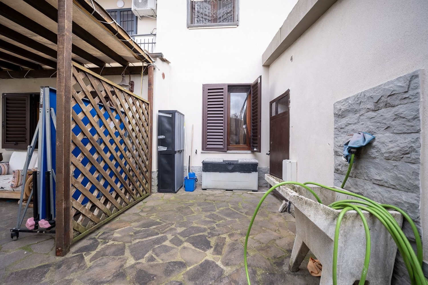 Campi bisenzio, zona semi-centrale, in contesto prettamente residenziale, tranquillo e silenzioso, e al tempo stesso vicino a tutti i principali servzi, si propone in vendita delizioso appartamento trivani indipendente di 77mq catastali oltre giardino e posto auto, sito al piano terra di un piccolo fabbricato trifamiliare senza alcuna spesa di condominio. L'immobile, libero su due lati, è dotato di entrata indipendente dal suddetto giardino esclusivo: uno spazio all'aperto, in parte verde e in parte piastrellato, ove poter trascorrere momenti di relax all'aria aperta in totale tranquillità e privacy. Internamente si compone di grazioso soggiorno open space con angolo cottura, disimpegno notte, un'ampia camera da letto matrimoniale, una camera da letto singola, un pratico armadio a muro ad utilizzo ripostiglio e doppi servizi con doccia ad areazione forzata. Completa la proprietà un posto auto scoperto di 24mq, sito all'interno dello spazio di manovra a comune con l'unità confinante, custodito da cancello elettrico. L'oggetto, in buonissime condizioni generali, si presta idealmente per persone anziane o con ridotta capacità motoria, vista l'assenza di barriere architettoniche e la presenza dei servizi di prima necessità nelle vicinanze. Ottimo anche come investimento nell'ambito delle locazioni residenziali. Richiesti euro 310.000. Libero in tempi tecnici, vendesi. classe energetica: g