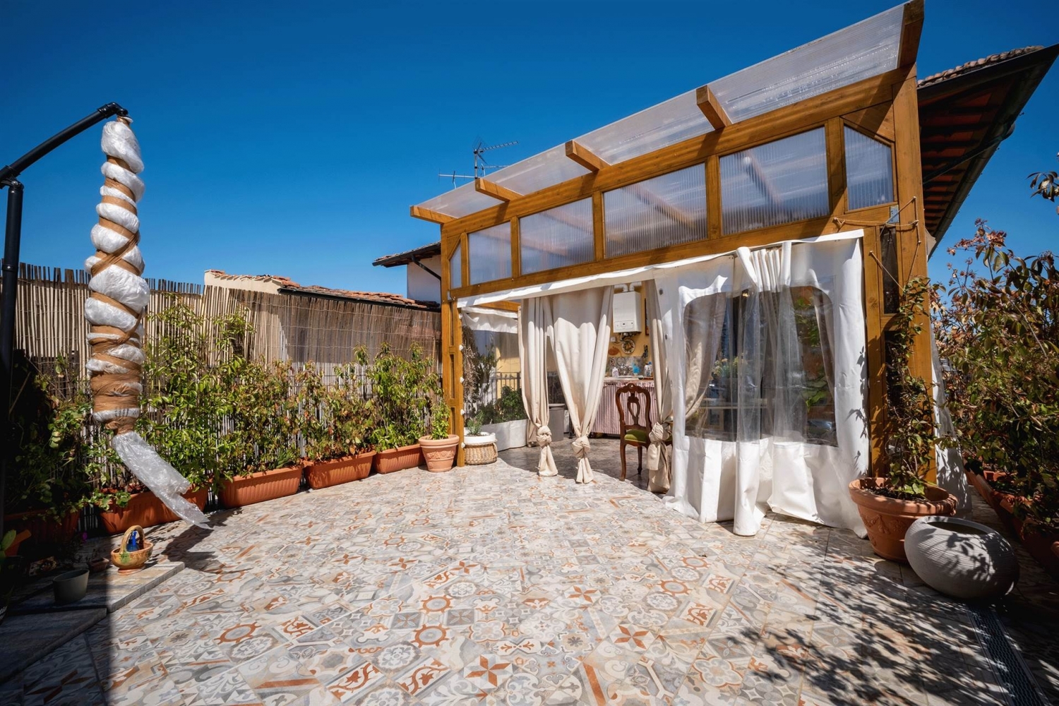 Campi bisenzio, zona centro, nelle immediate vicinanze della vecchia coop e di piazza aldo moro, in posizione strategica per i servizi e gli spostamenti, proponiamo in vendita delizioso appartamento indipendente di 98mq catastali, corredato da un meraviglioso lastrico solare di circa 65mq. L'immobile, frutto di una totale e recentissima ristrutturazione, è disposto su tre livelli fuori terra. Al pian terreno rialzato vieniamo accolti da un invitante disimpegno-ingresso, preceduto da un piccolo resede di pertinenza. Salendo una prima rampa di scale in parquet di legno si raggiunge il piano primo, composto da disimpegno, una zona giorno open space con angolo cottura con accesso al suddetto lastrico solare di 65mq, un bagno finestrato con box doccia e una spaziosa camera da letto matrimoniale. Tale lastrico rappresenta il fiore all'occhiello della proprietà: uno spazio interamente piastrellato dotato di attachi idrici per lavanderia e di un pergolato removibile, che conferisce una spiccata luminosità alla zona giorno e ove poter trascorrere piacevoli momenti di relax in compagnia. Al secondo ed ultimo piano, raggiungibile mediante un'ulteriore rampa di scale in legno parquet, trova spazio infine un piacevole sottotetto, allestito per fungere da seconda camera da letto, con annesso spazio studio/guardaroba. L'immobile si presenta in ottime condizioni, pronto per essere abitato chiavi in mano. Risulta inoltre completo di impianto di allarme, doppi vetri, aria condizionata, videocitofono, persiane in alluminio e tetto coibentato. Richiesti euro 278.000. Libero in tempio tecnici, vendesi arredato di cucina, bagno e cameretta. classe energetica: f