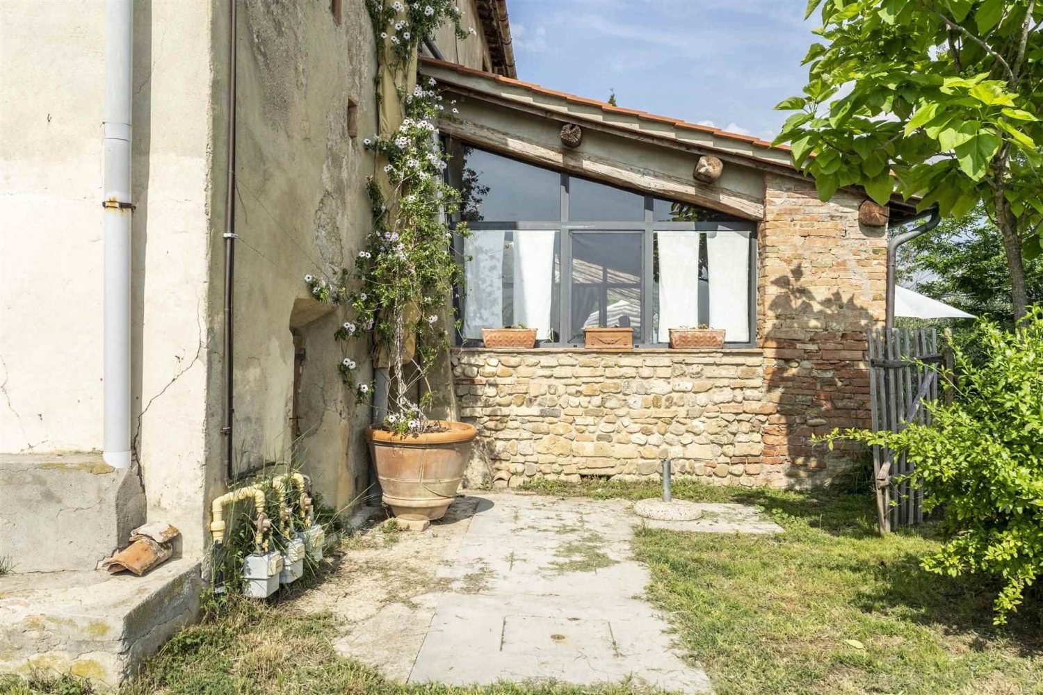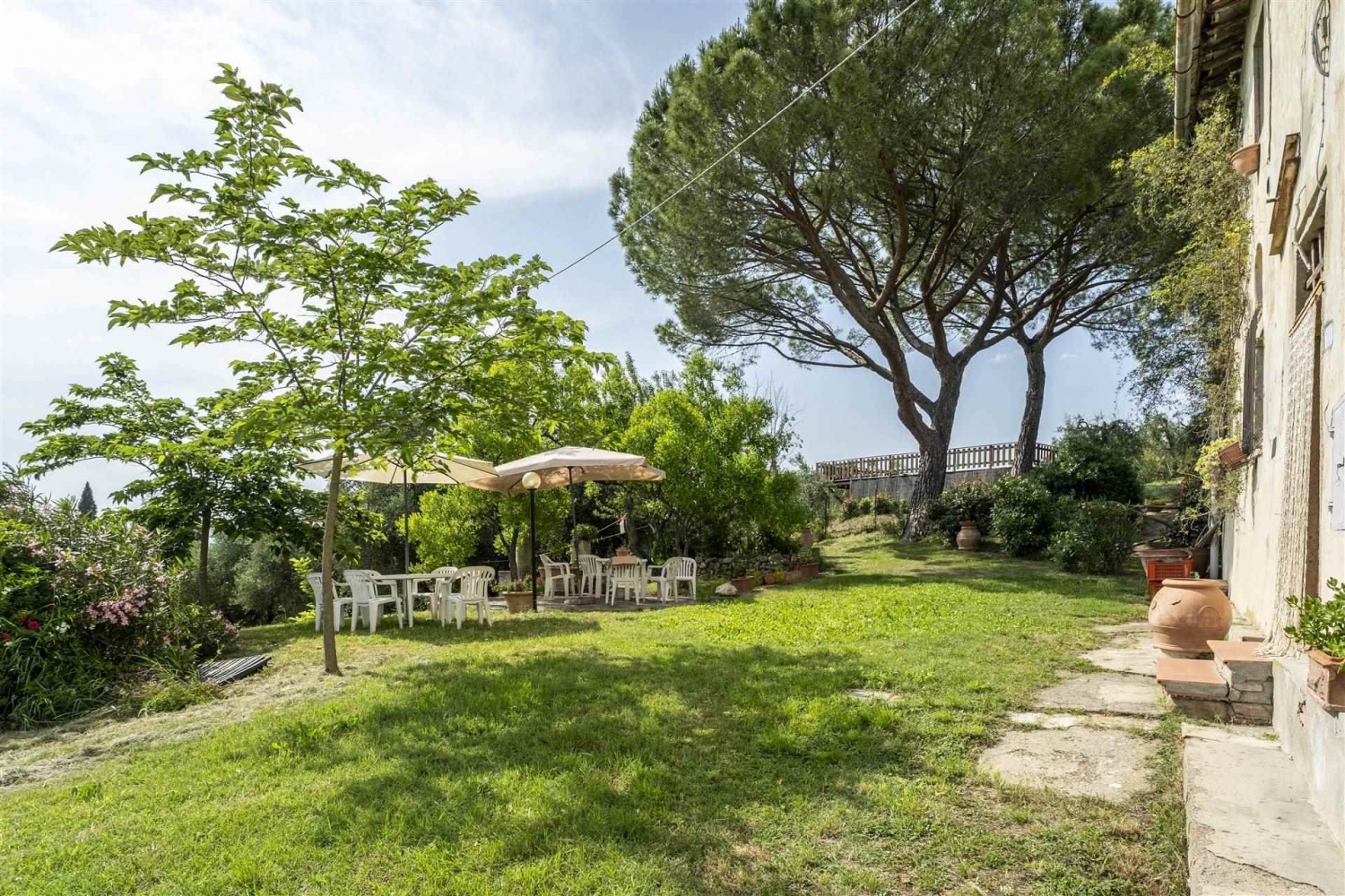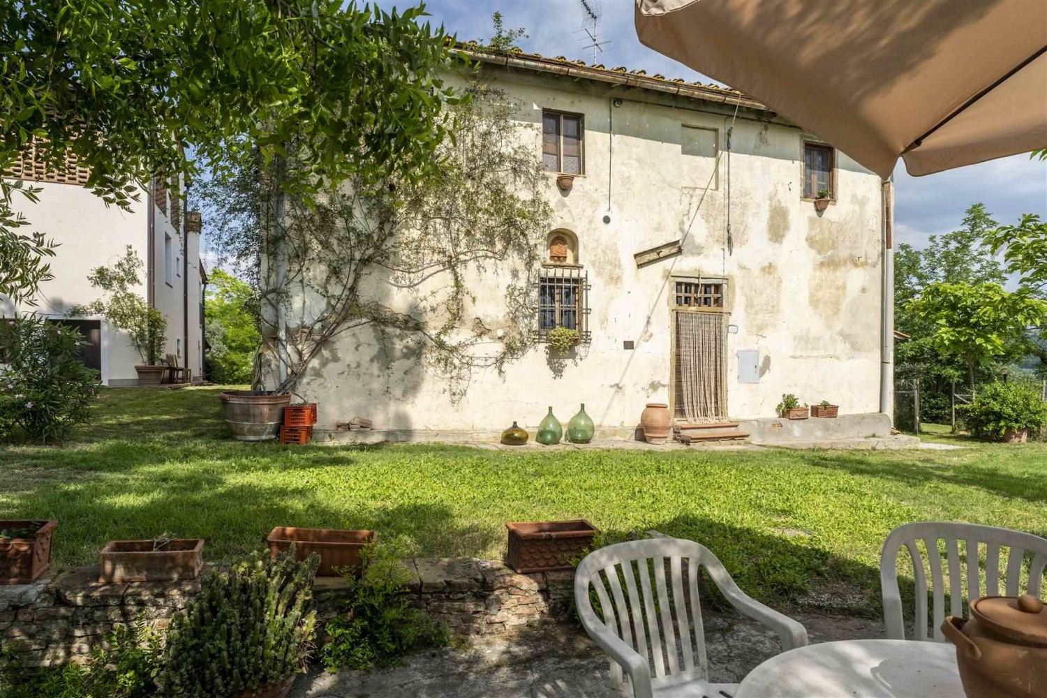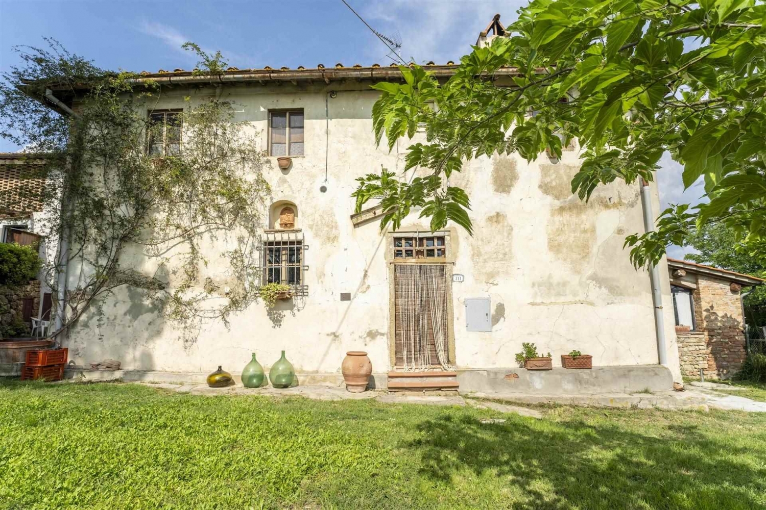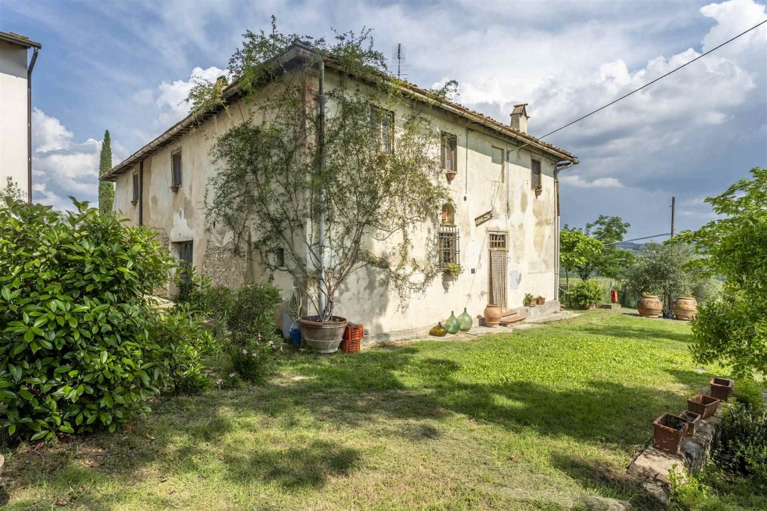 Nel comune di certaldo, in zona bagnano, in posizione collinare e panoramicissima, vendesi porzione di colonica libera su tre lati, attualmente suddivisa in 4 unità abitative, e precisamente:- al piano terreno, troviamo un bellissimo bilocale con un'ampia loggia finestrata che si affaccia sulle colline circostanti con un panorama spettacolare;- sempre al piano terreno, troviamo un ulteriore bilocale, completamente da ristrutturare, con possibilità di collegamento con l'unità immobiliare suddetta;- al piano primo, aventi accesso da scala condominiale, sono presenti altri due appartamenti: uno composto da cucina, 3 camere, due bagni e disimpegno; l'altro composto da cucina, 2 camere, bagno finestrato e disimpegno.l'immobile è circondato da terreni coltivati in parte ad oliveto ed in parte utilizzati come giardino, aventi una superficie complessiva di circa mq. 13.600, oltre all'utilizzo della piscina condominiale.l'immobile gode di un'ampia vista su vigneti ed oliveti, fino a scorgere le torri di san gimignano. Dista pochi km. Da certaldo e da barberino v.e.la proprietà può essere un ottimo acquisto sia come investimento per affitti turistici, che come abitazione privata. classe energetica: g
